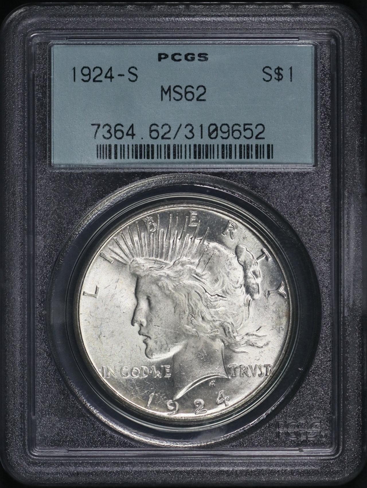 1924-S Peace Dollar PCGS MS-62 Old Green Holder