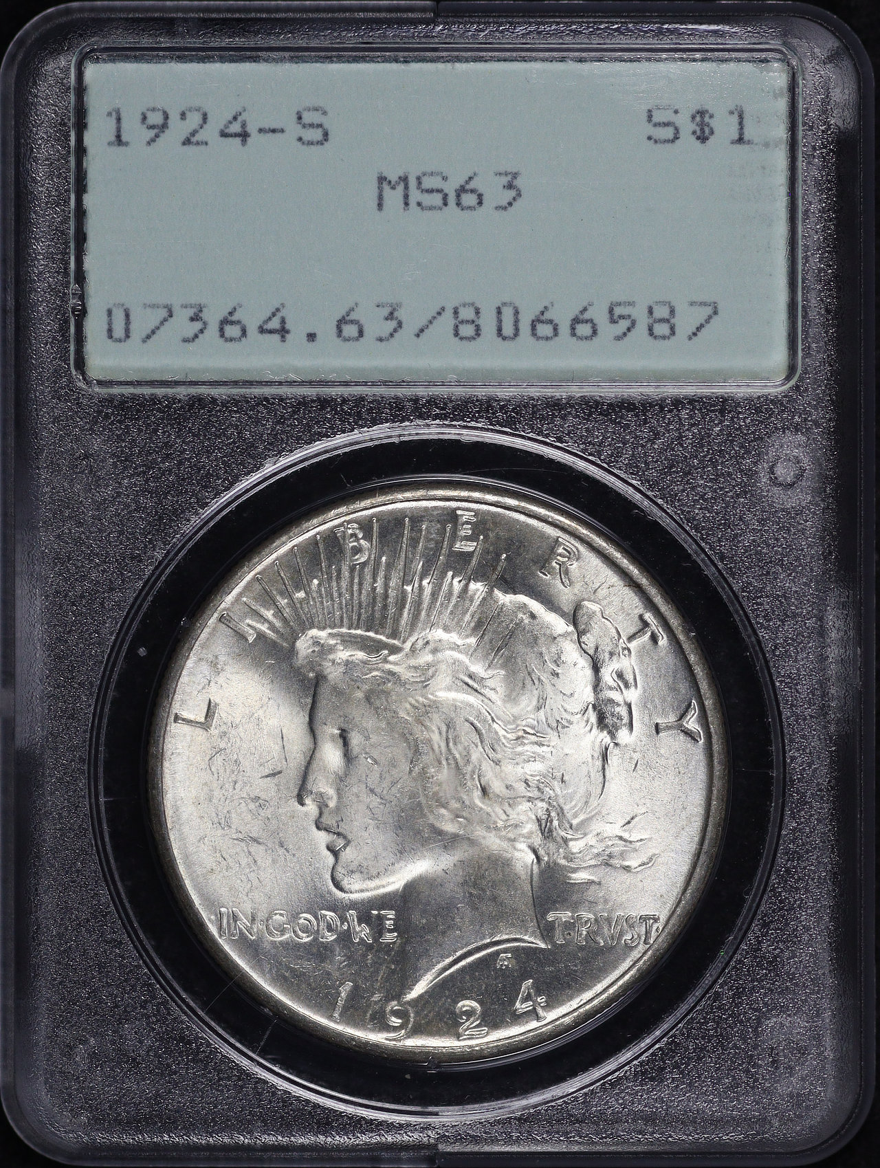 1924-S Peace Dollar PCGS MS-63 Old Green Rattler Holder
