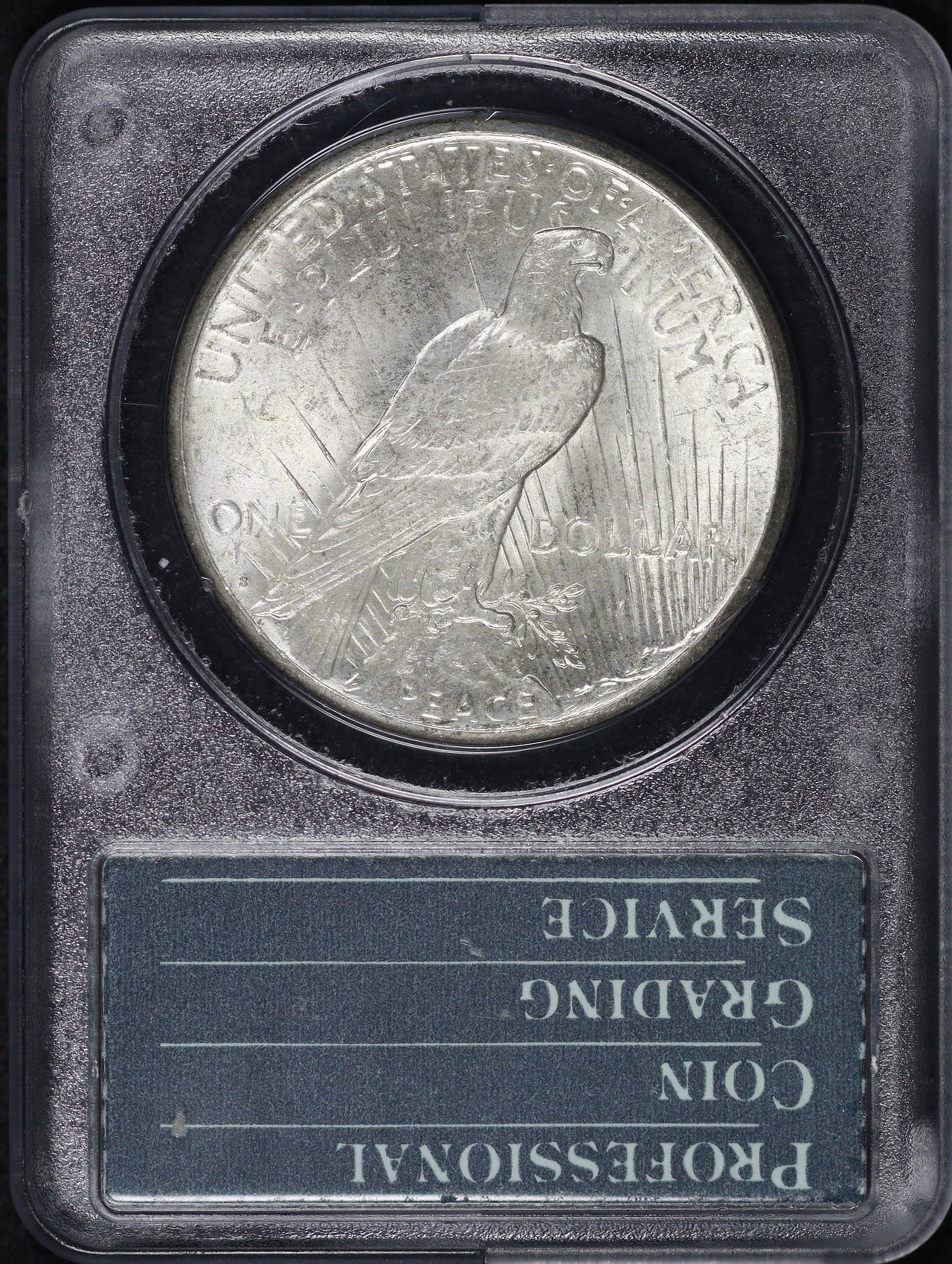 1924-S Peace Dollar PCGS MS-63 Old Green Rattler Holder designed by Anthony de Francisci.