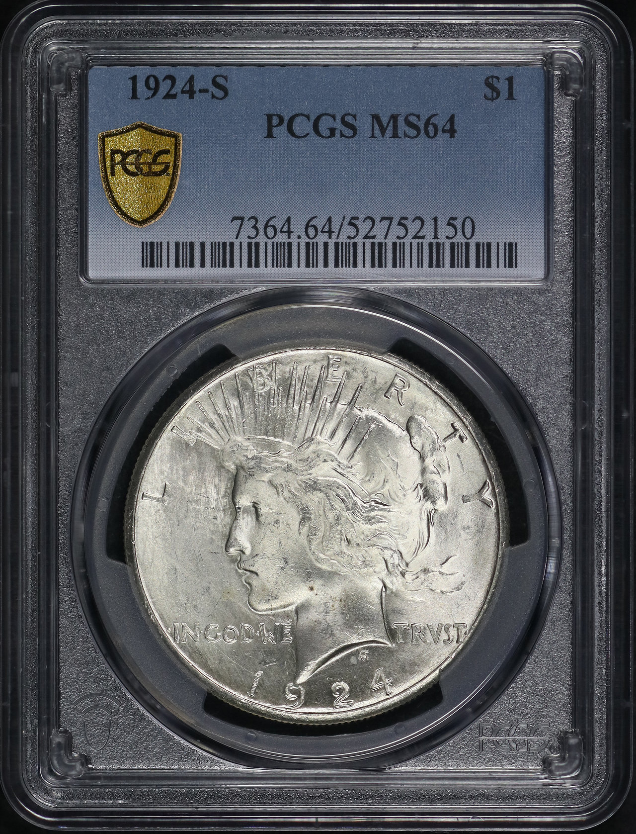 1924-S Peace Dollar PCGS MS-64 designed by Anthony de Francisci.