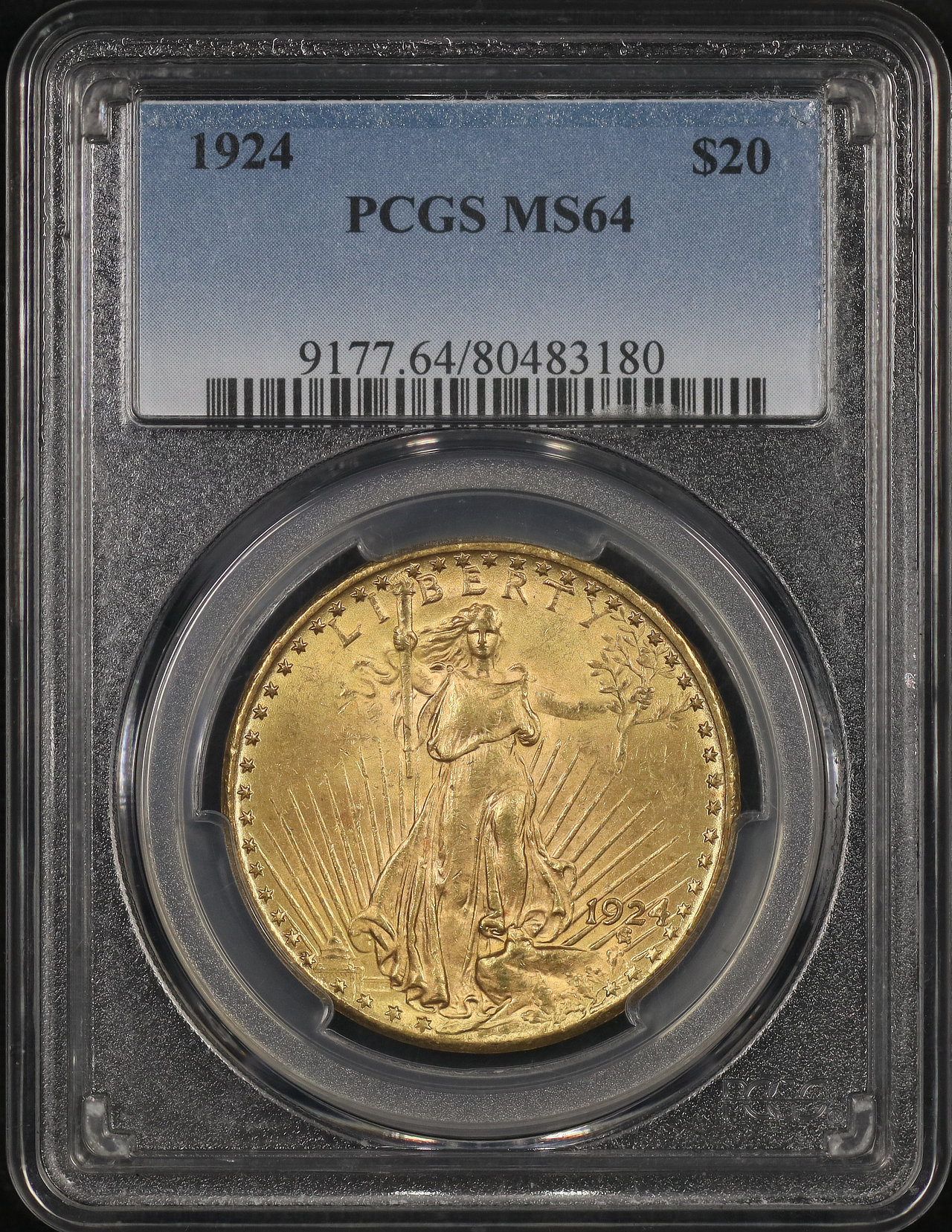 1924 St. Gaudens $20 PCGS MS-64 designed by Augustus Saint Gaudens.