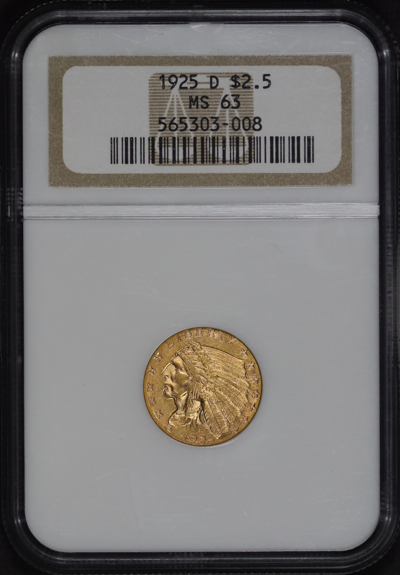 1925-D Indian $2.5 NGC MS-63.