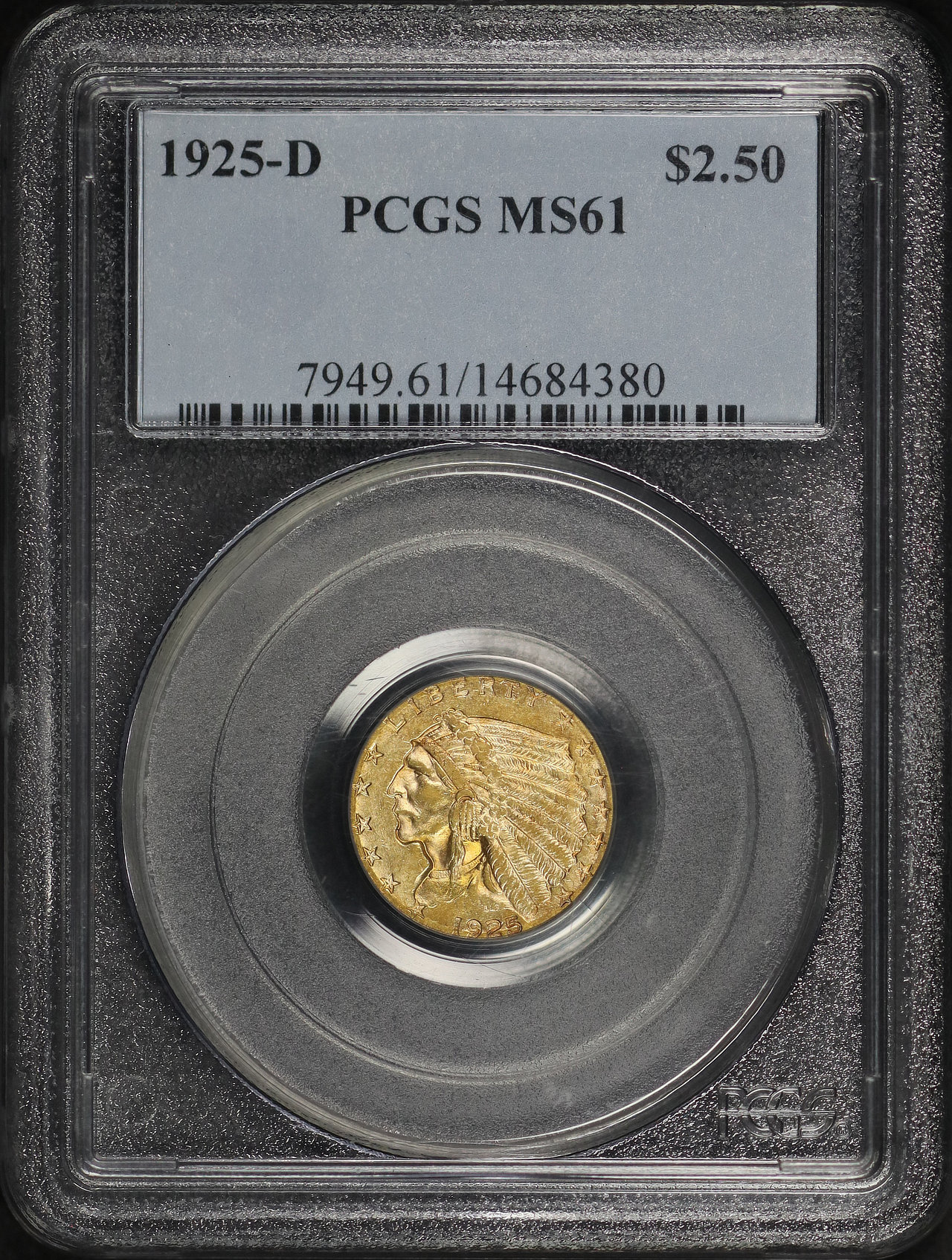 1925-D Indian $2.5 PCGS MS-61 designed by Bela Lyon Pratt.