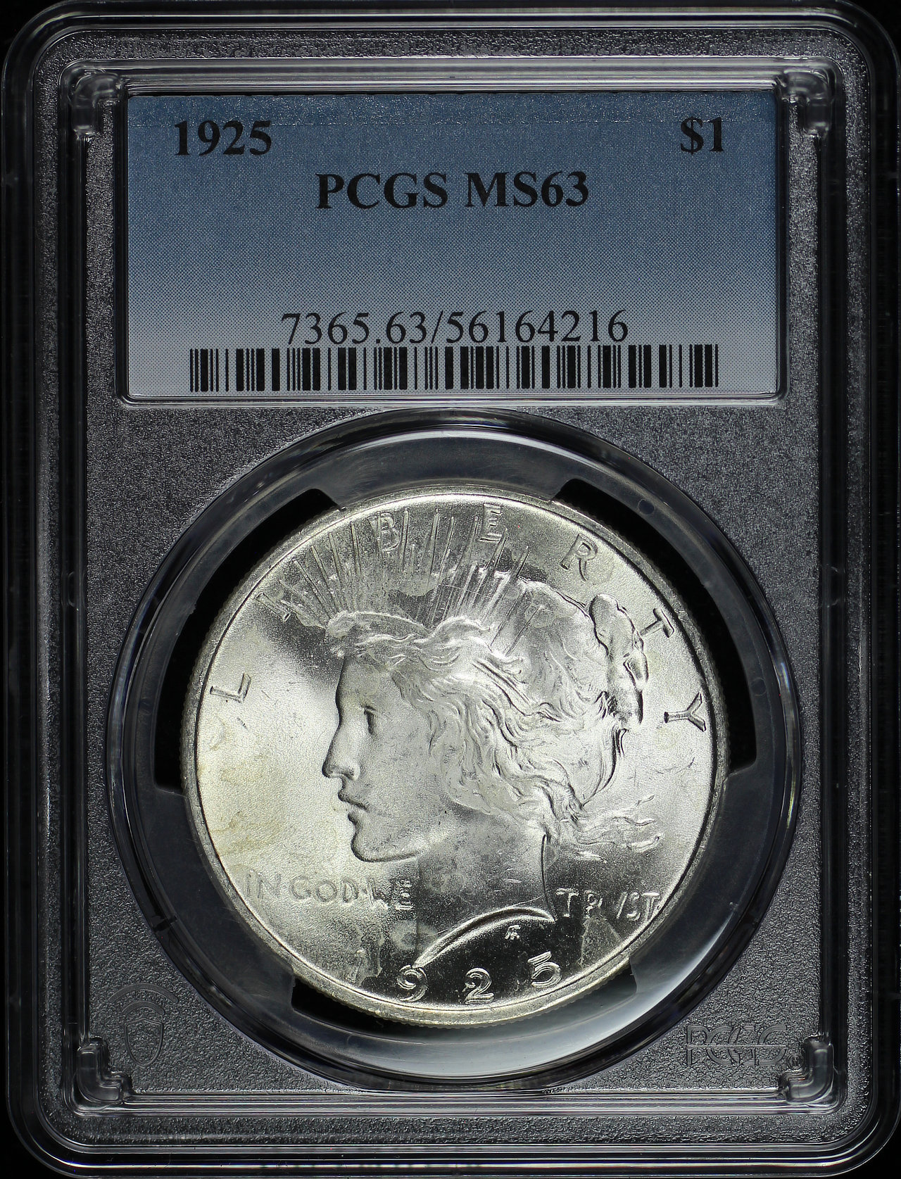 1925 Peace Dollar PCGS MS-63 designed by Anthony de Francisci.