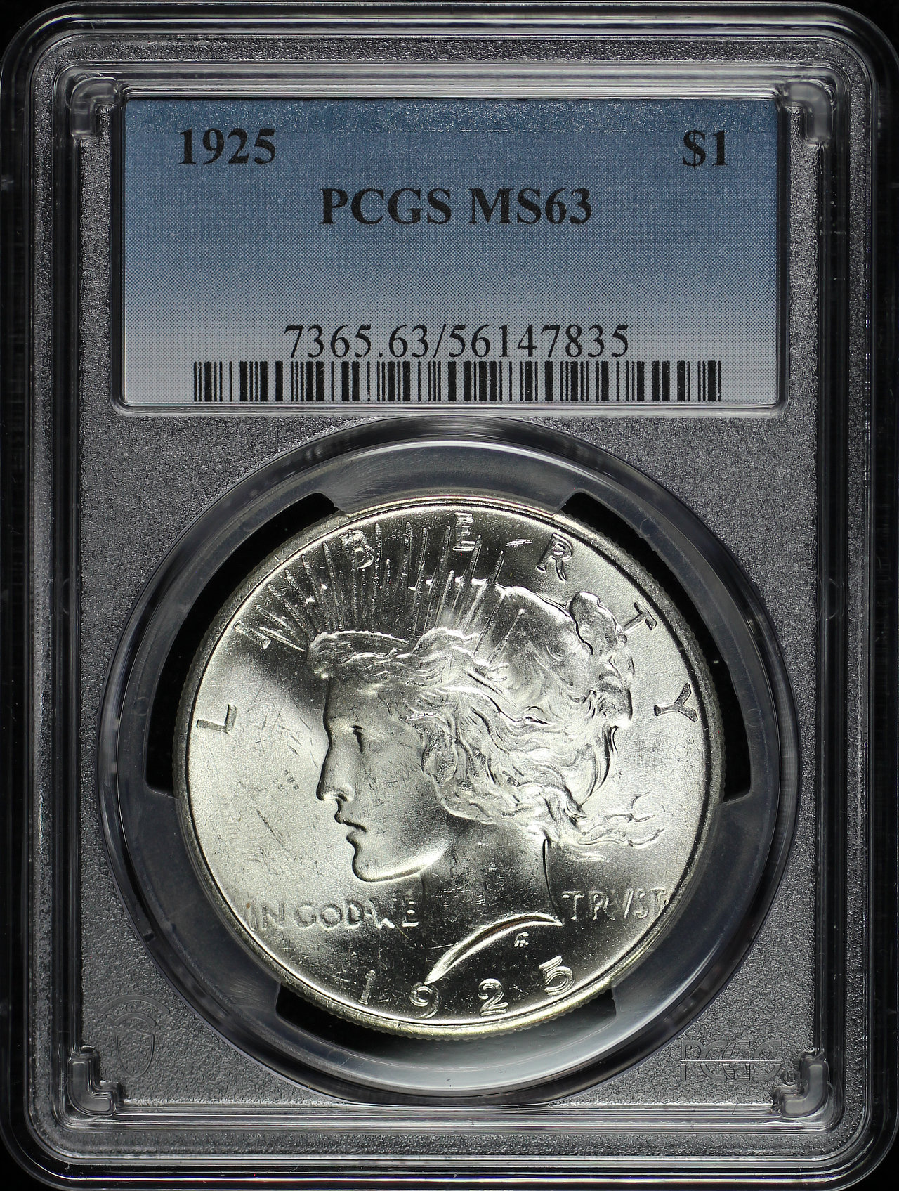 1925 Peace Dollar PCGS MS-63 designed by Anthony de Francisci.
