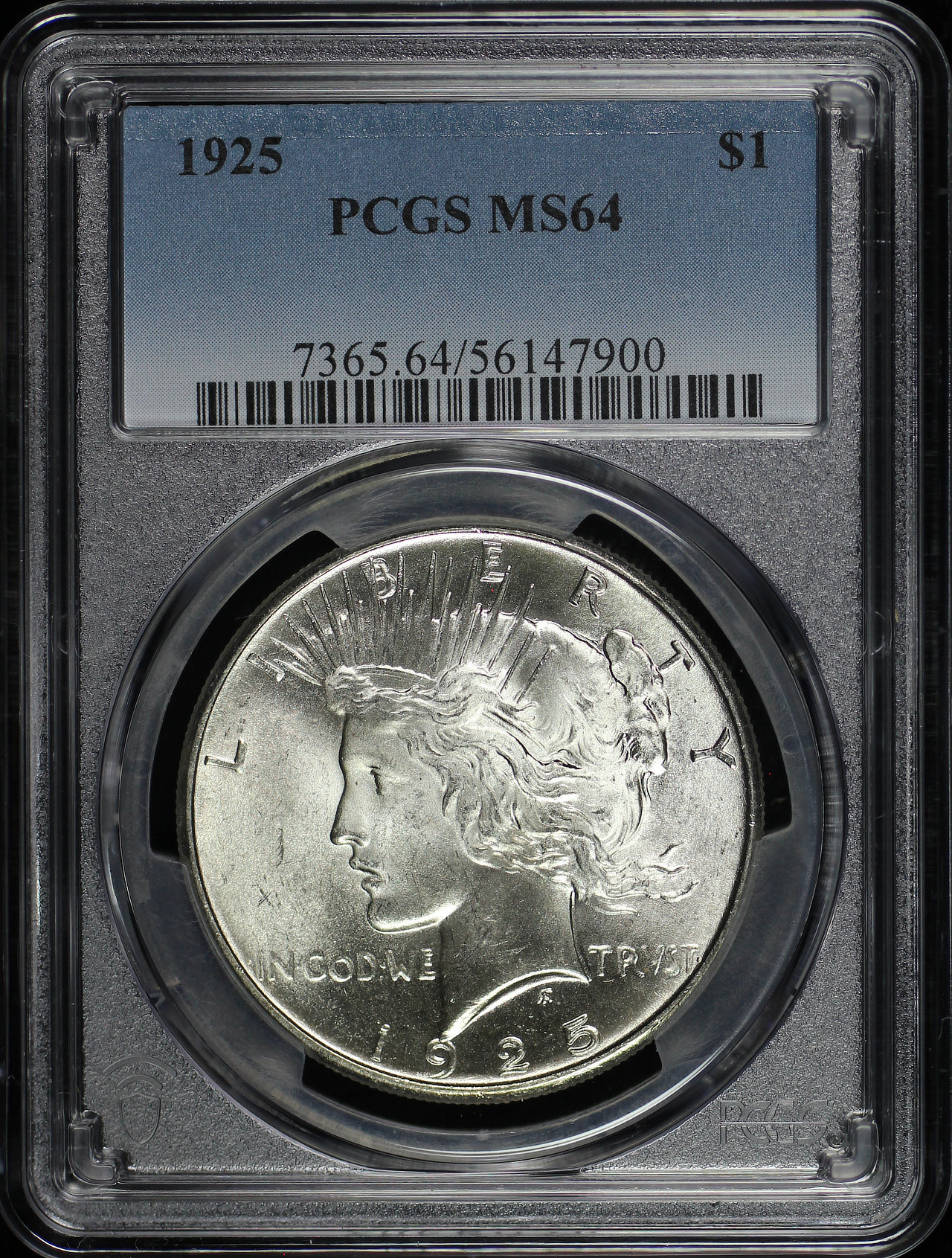 1925 Peace Dollar PCGS MS-64 designed by Anthony de Francisci.