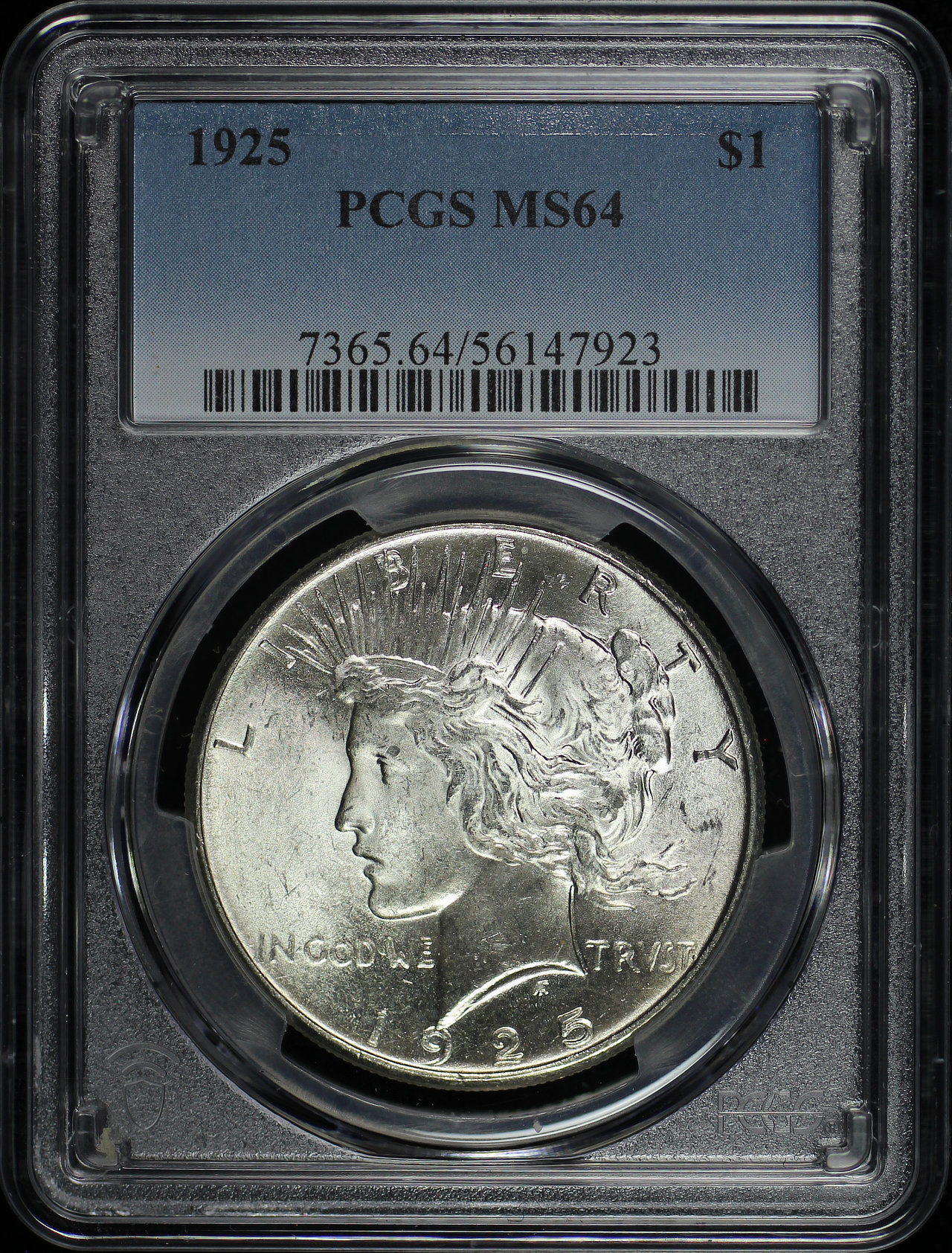 1925 Peace Dollar PCGS MS-64 designed by Anthony de Francisci.