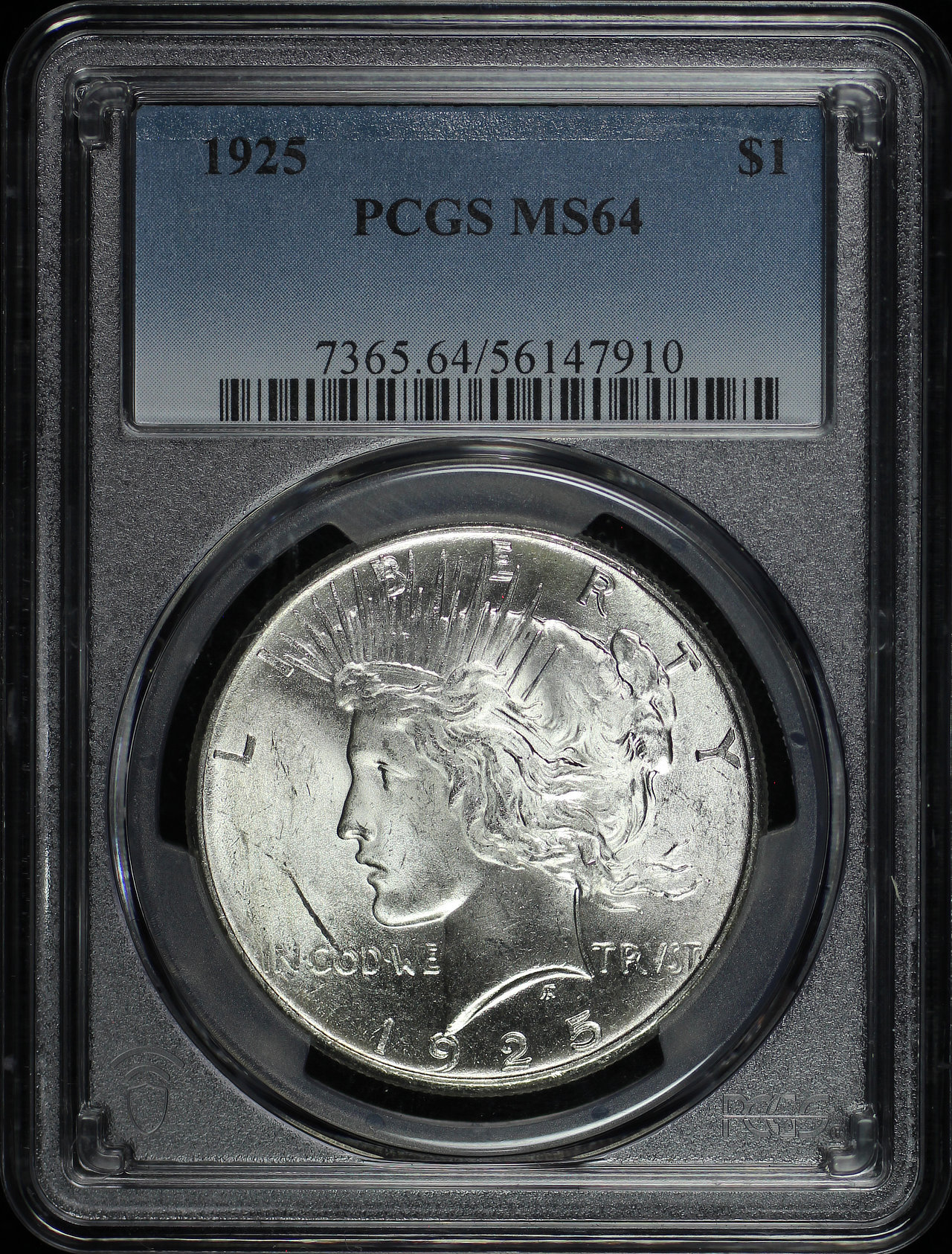 1925 Peace Dollar PCGS MS-64 designed by Anthony de Francisci.