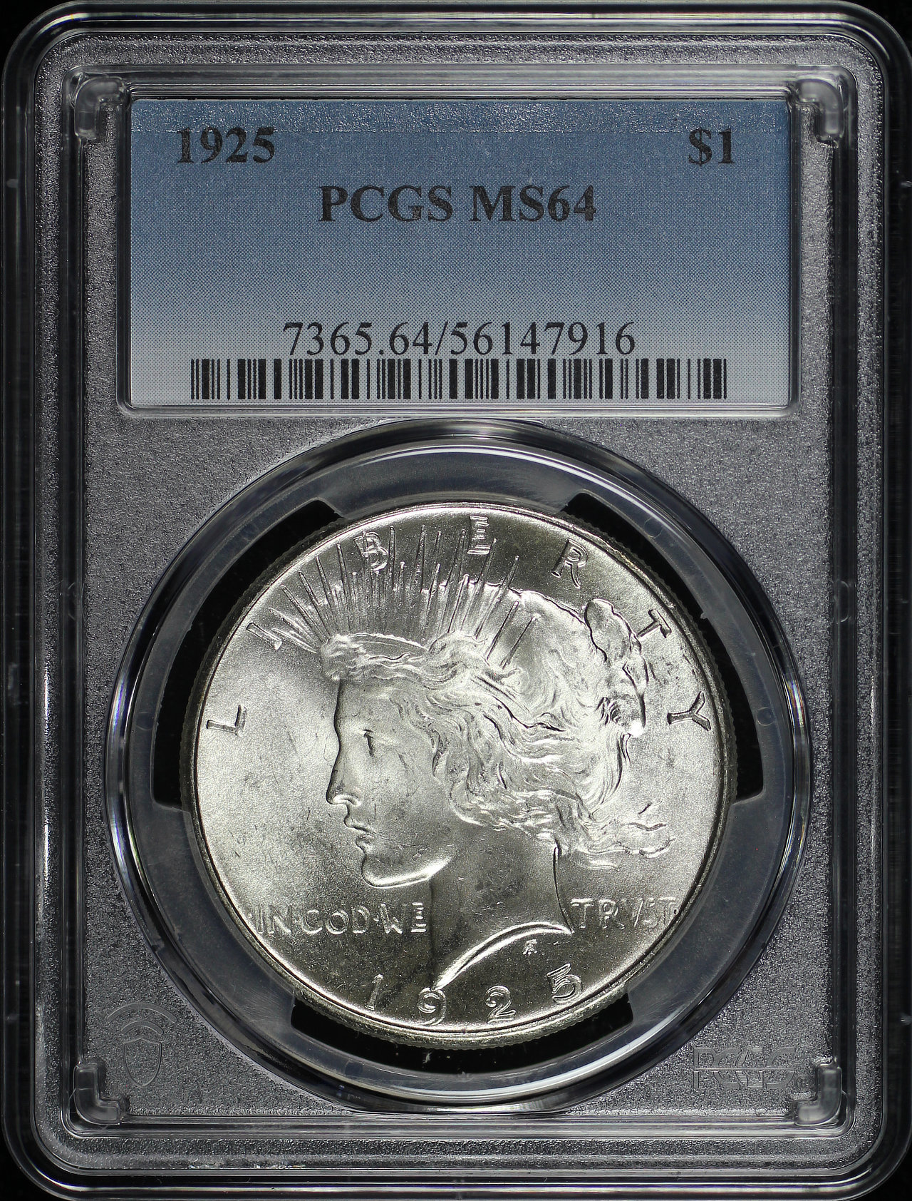 1925 Peace Dollar PCGS MS-64 designed by Anthony de Francisci.