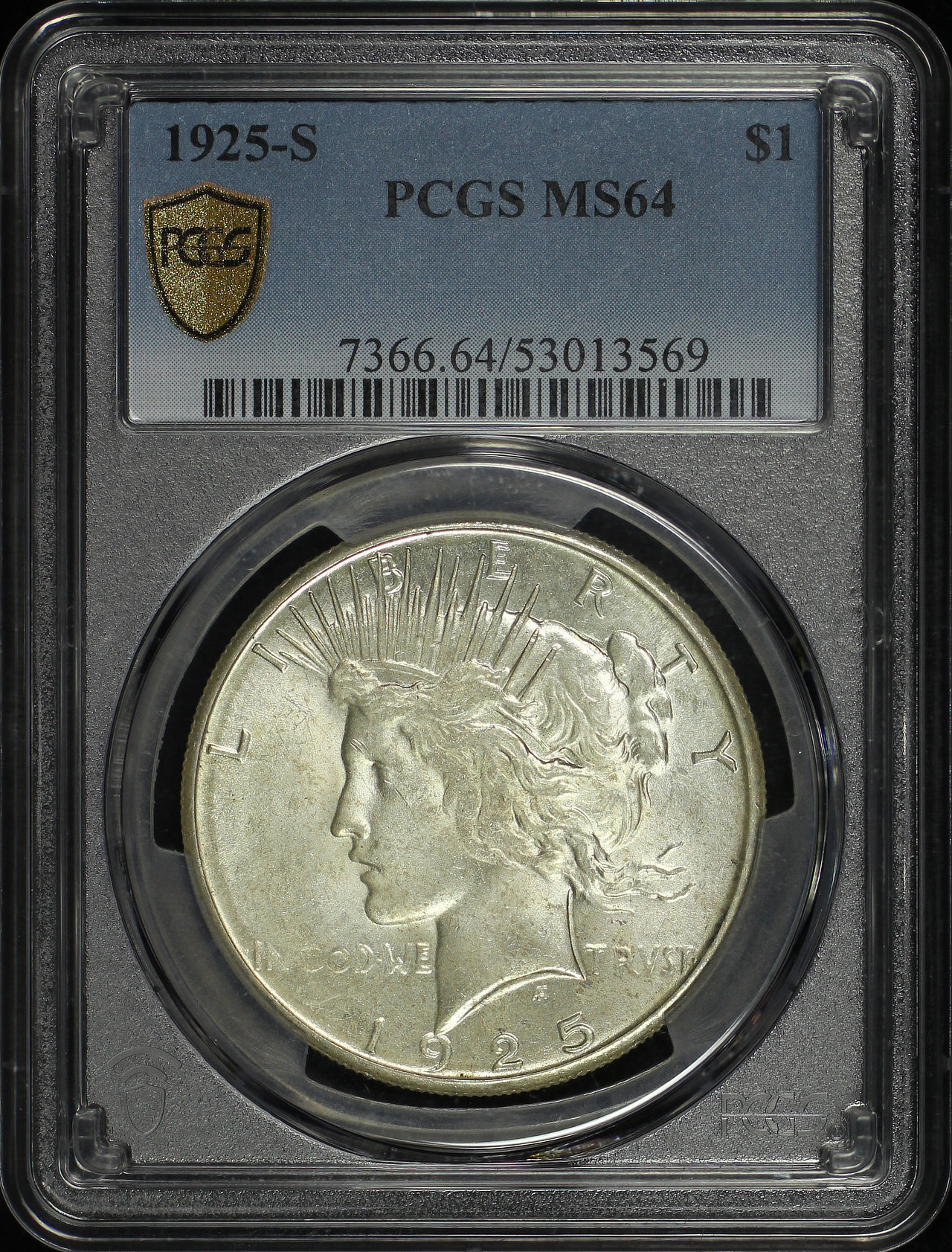 1925-S Peace Dollar PCGS MS-64 designed by Anthony de Francisci.
