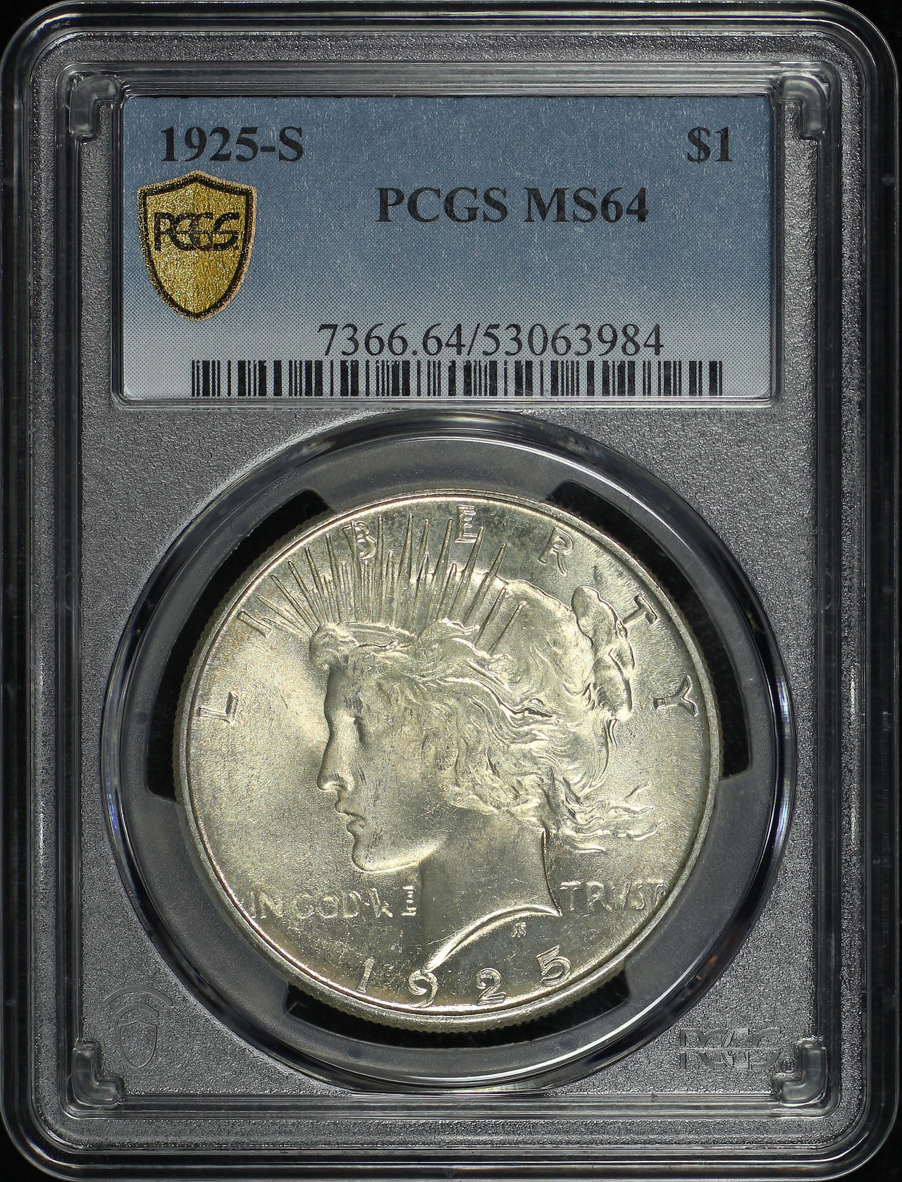 1925-S Peace Dollar PCGS MS-64 designed by Anthony de Francisci.