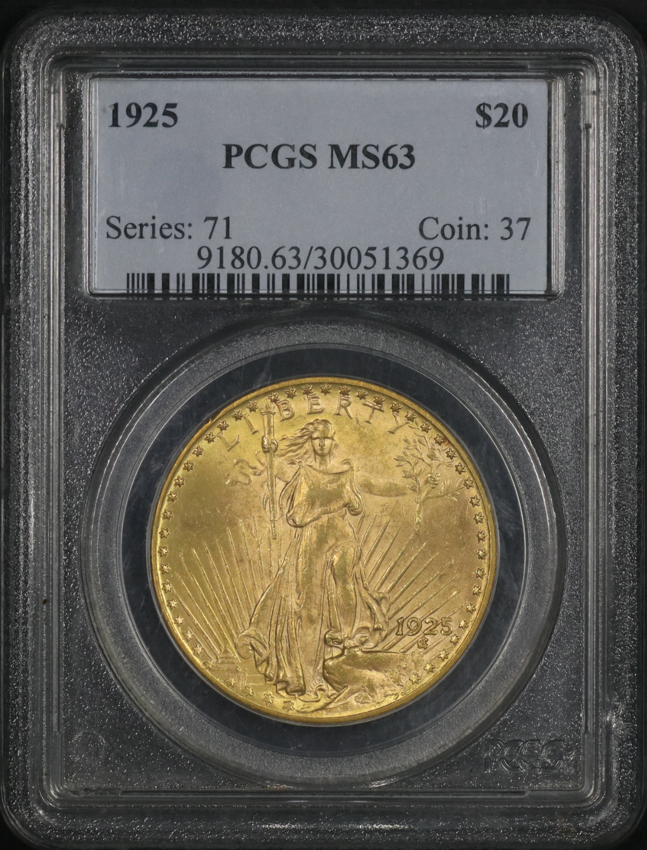 1925 St. Gaudens $20 PCGS MS-63 designed by Augustus Saint Gaudens.