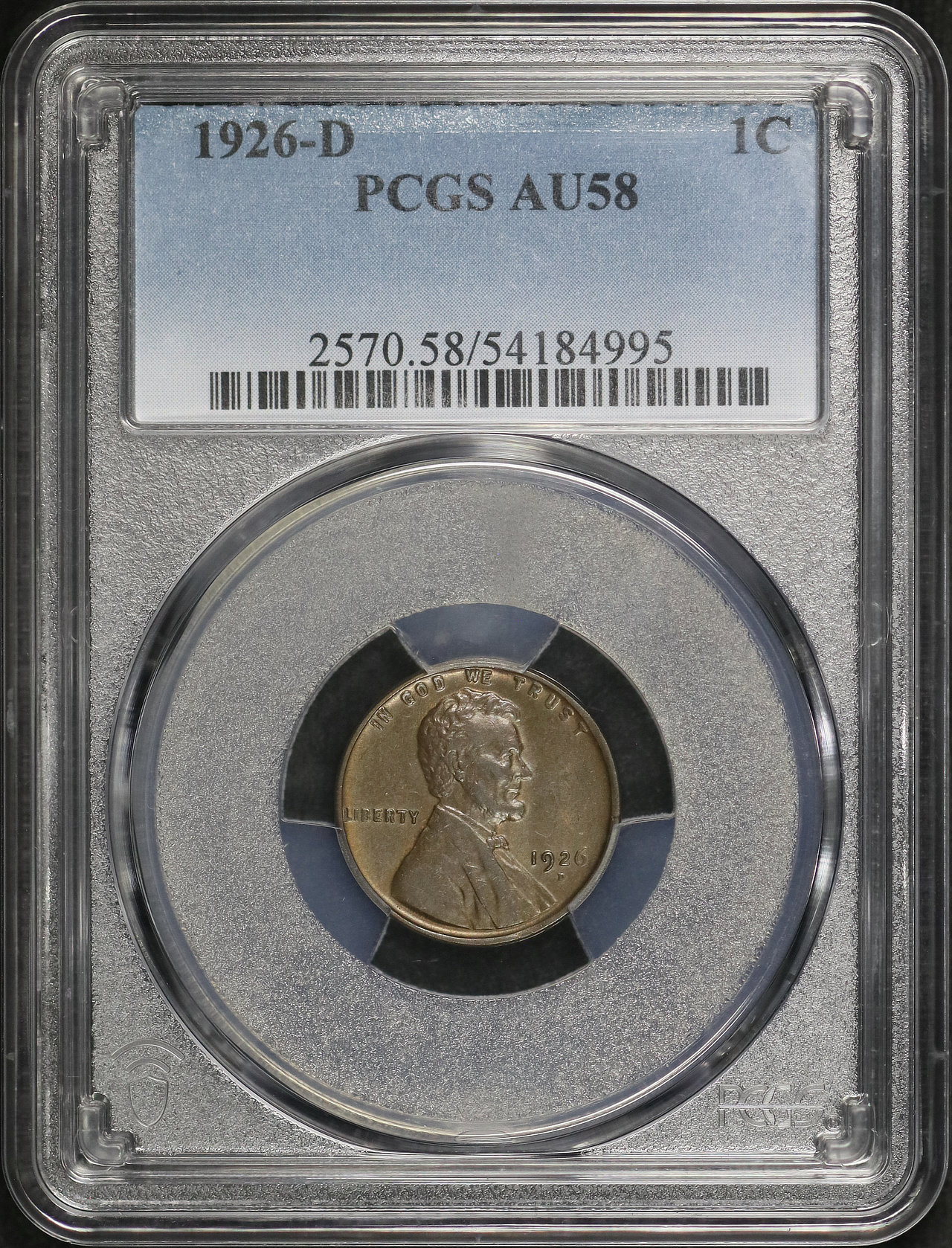 1926-D Lincoln Cent Wheat Reverse PCGS AU-58 BN designed by Victor David Brenner.