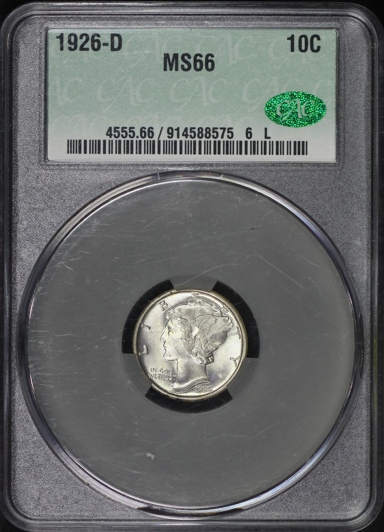 1926-D Mercury Dime CACG MS-66.