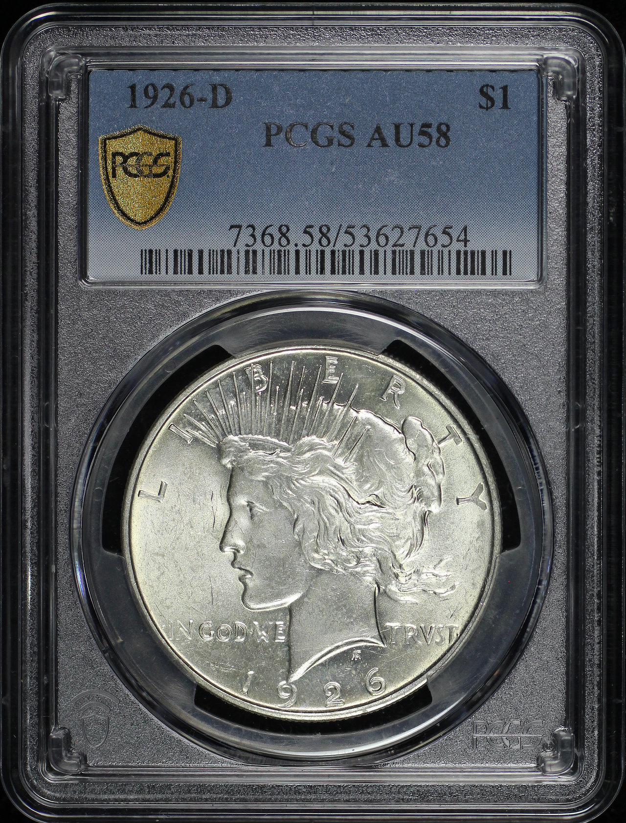 1926-D Peace Dollar PCGS AU-58 designed by Anthony de Francisci.