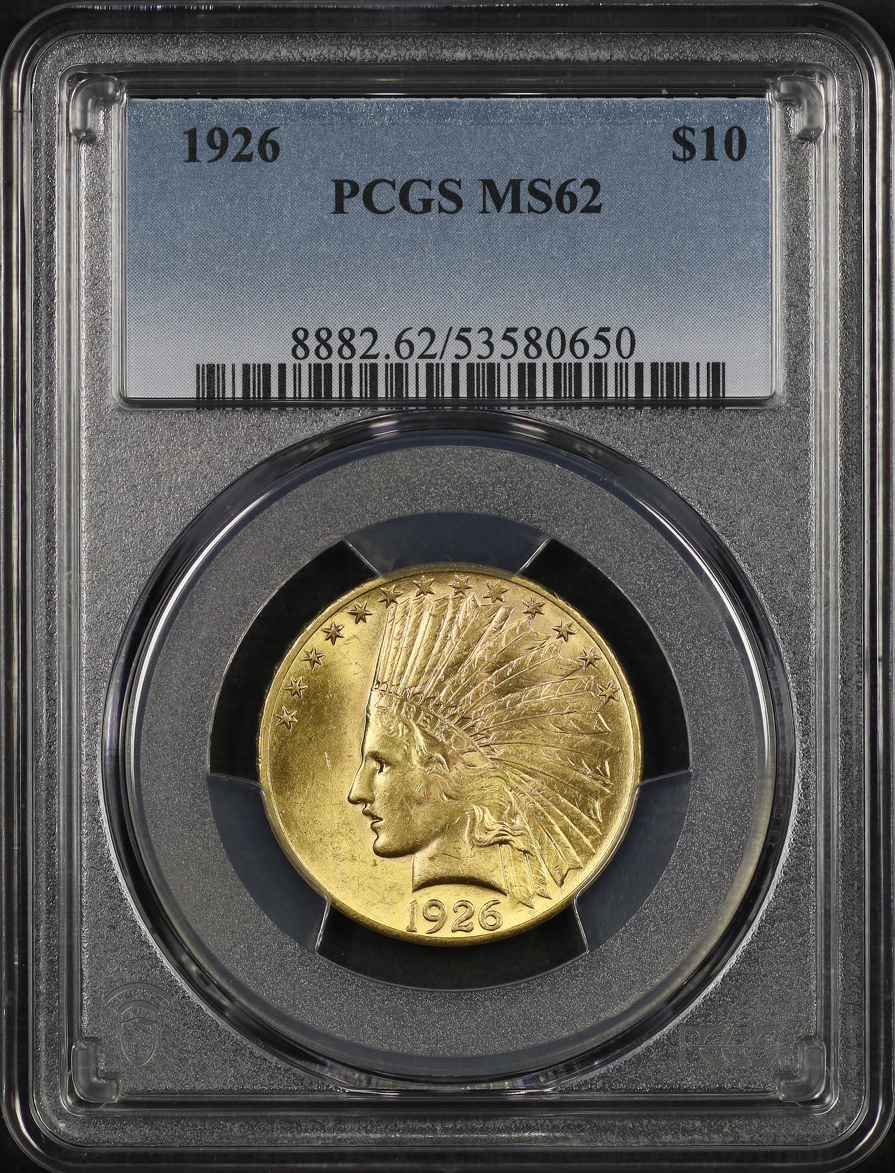 1926 Indian $10 Motto PCGS MS-62 designed by Augustus Saint Gaudens.