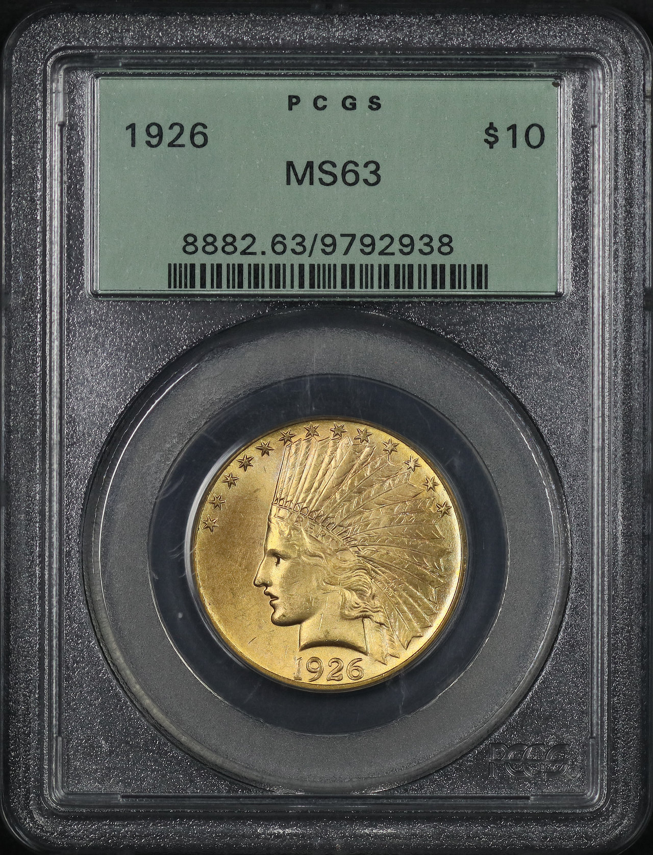 1926 Indian $10 Motto PCGS MS-63 Old Green Holder