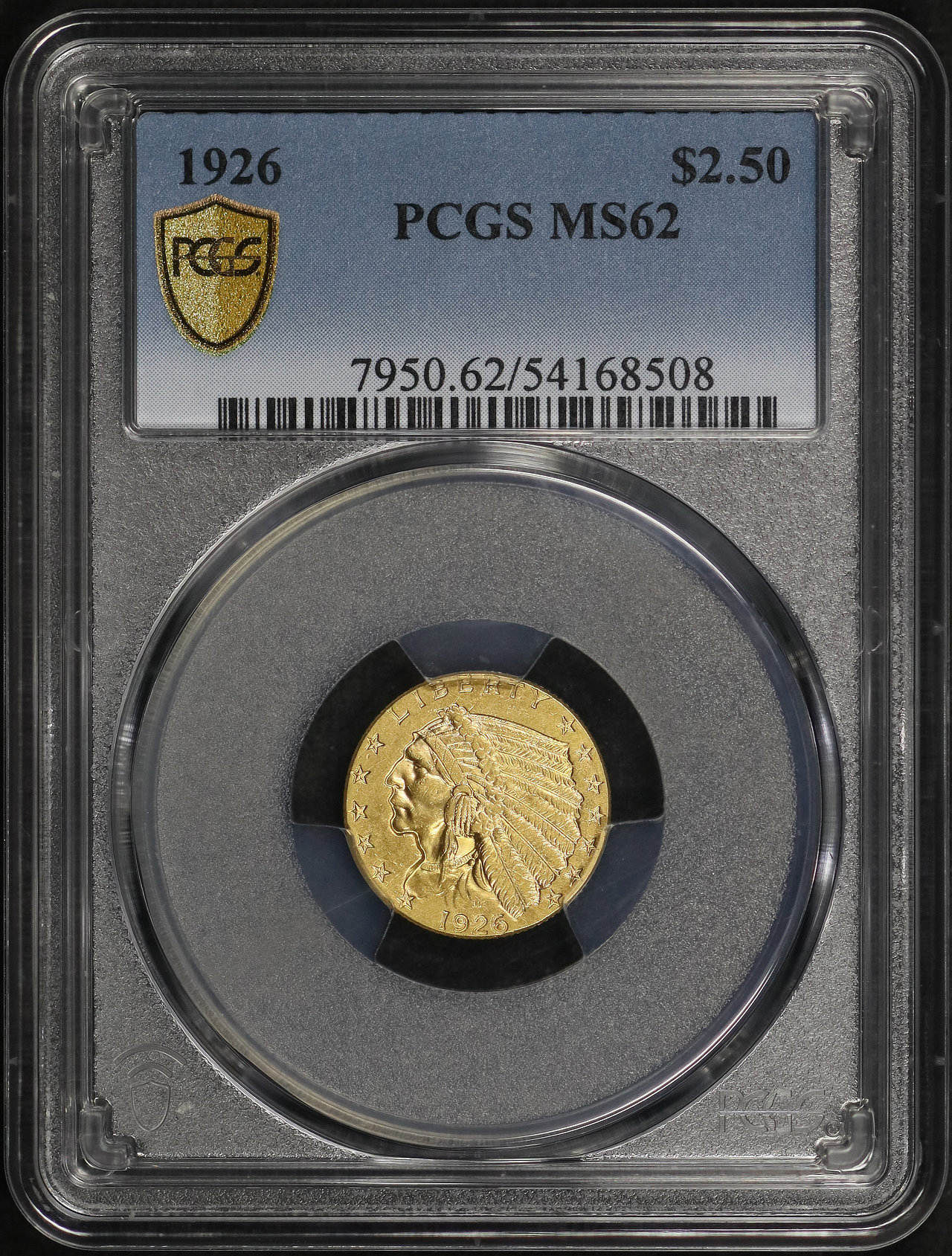 1926 Indian $2.5 PCGS MS-62 designed by Bela Lyon Pratt.