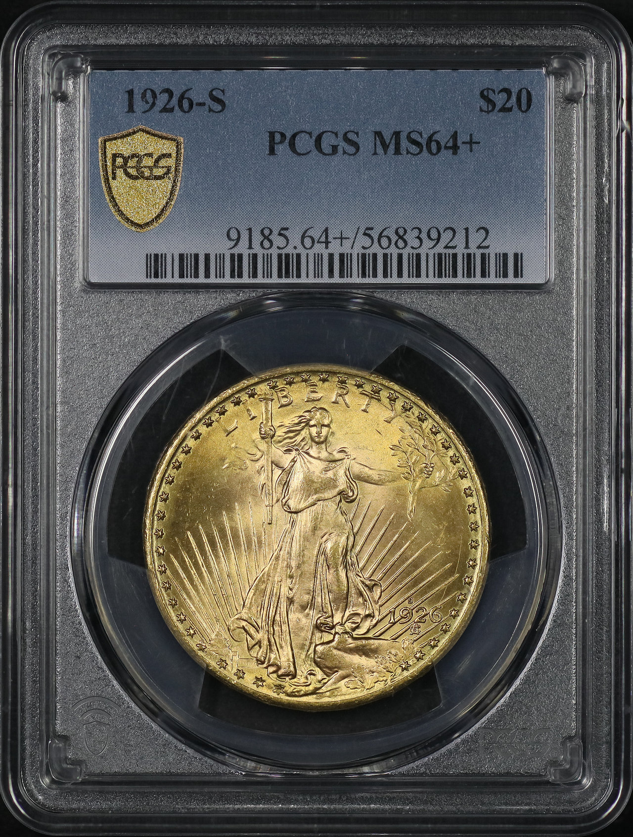 1926-S St. Gaudens $20 PCGS MS-64+ designed by Augustus Saint Gaudens.