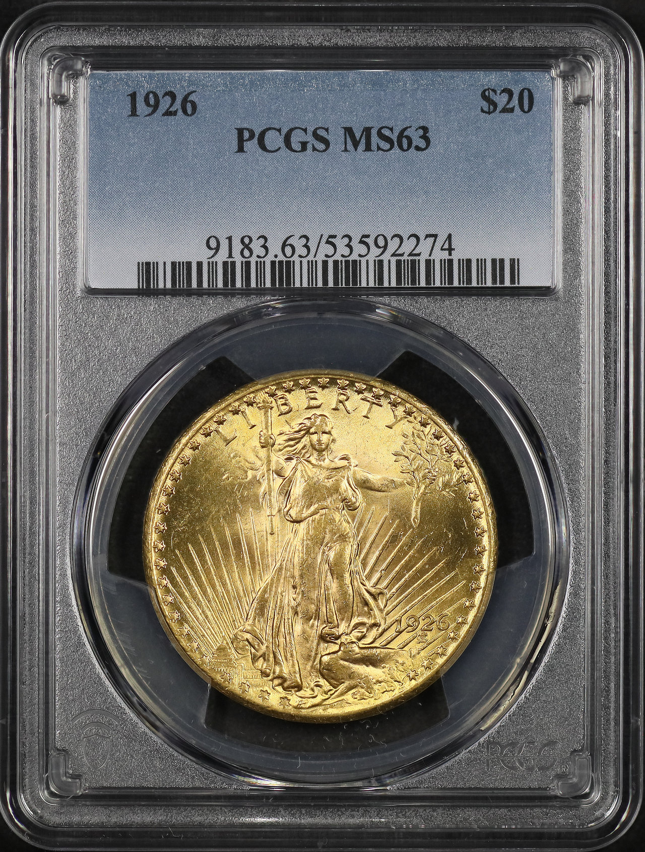 1926 St. Gaudens $20 PCGS MS-63 designed by Augustus Saint Gaudens.