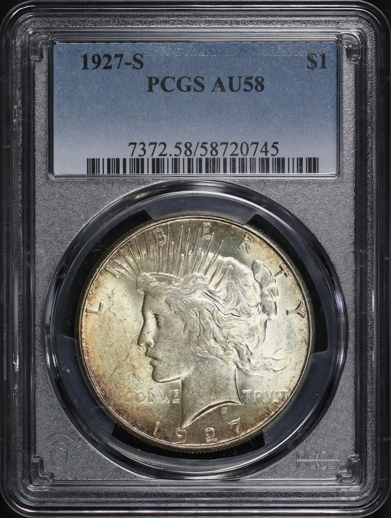 1927-S Peace Dollar PCGS AU-58 designed by Anthony de Francisci.