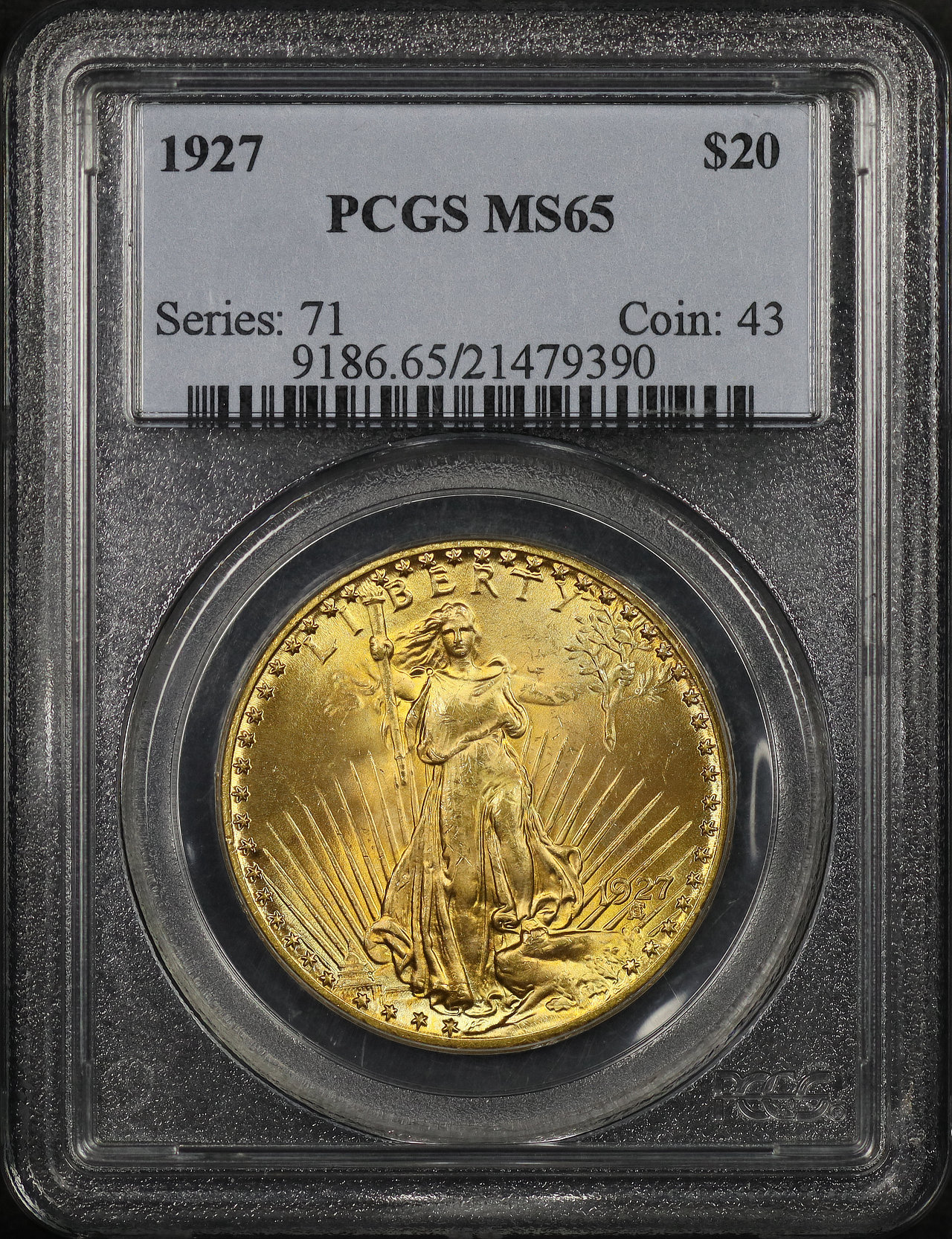 1927 St. Gaudens $20 PCGS MS-65 designed by Augustus Saint Gaudens.