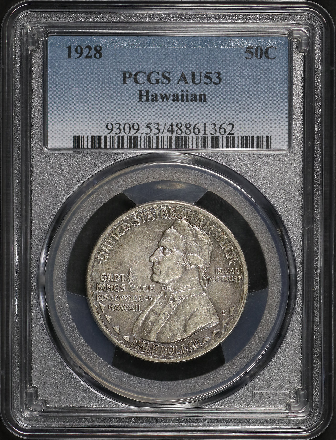 1928 50C Hawaiian Silver Commemorative PCGS AU-53