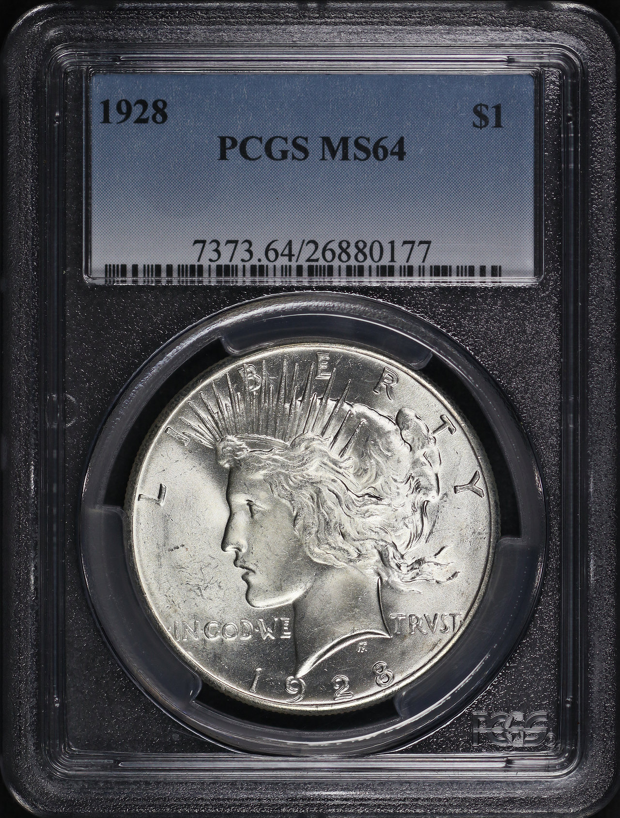 1928 Peace Dollar PCGS MS-64 designed by Anthony de Francisci.