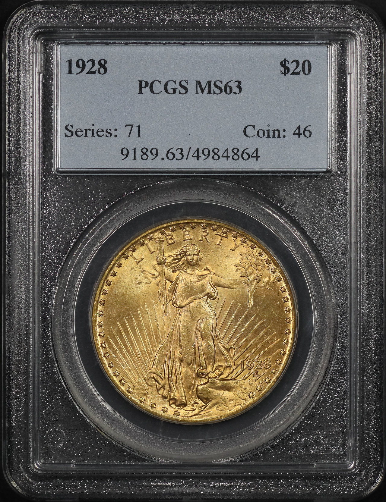 1928 St. Gaudens $20 PCGS MS-63 designed by Augustus Saint Gaudens.