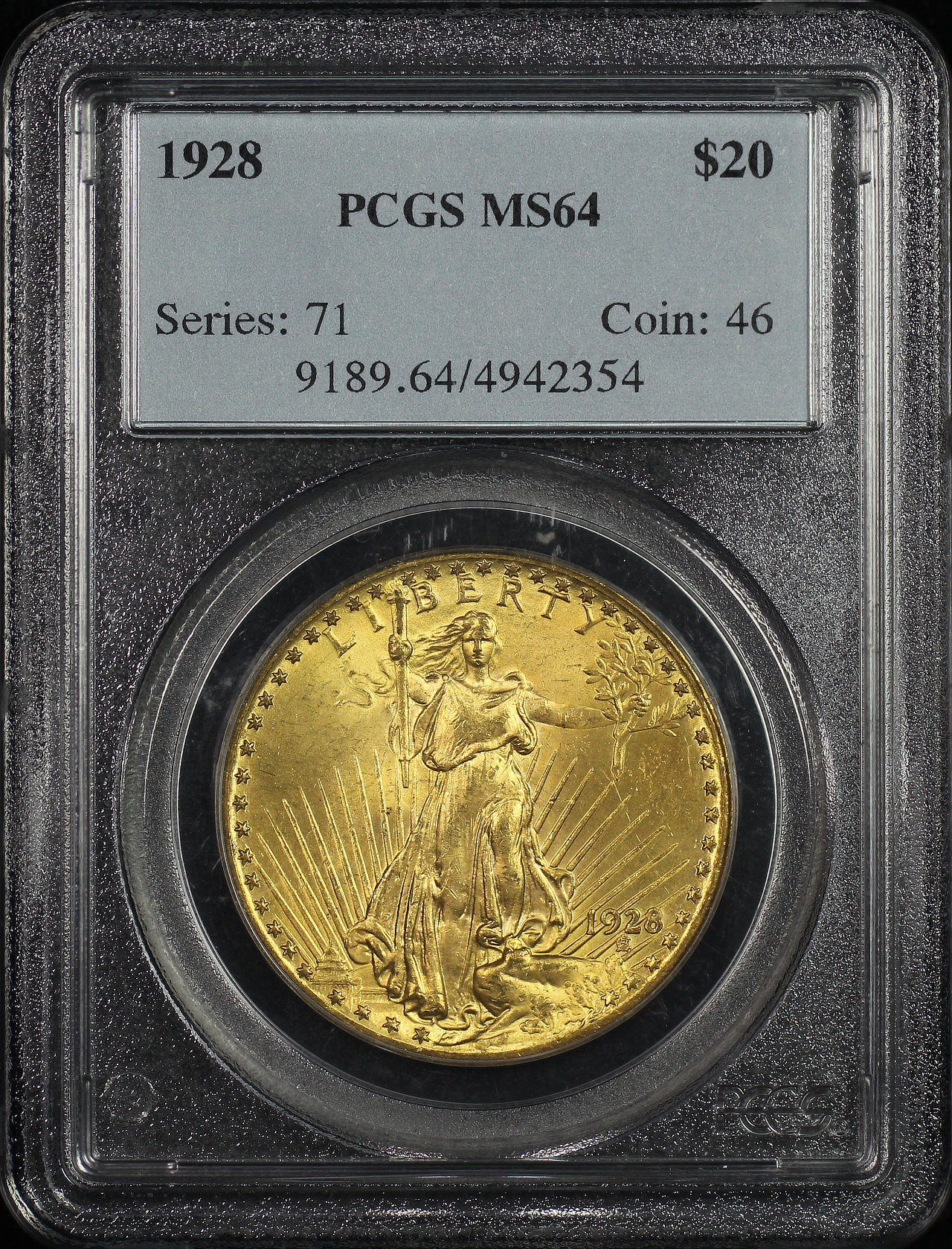1928 St. Gaudens $20 PCGS MS-64 designed by Augustus Saint Gaudens.