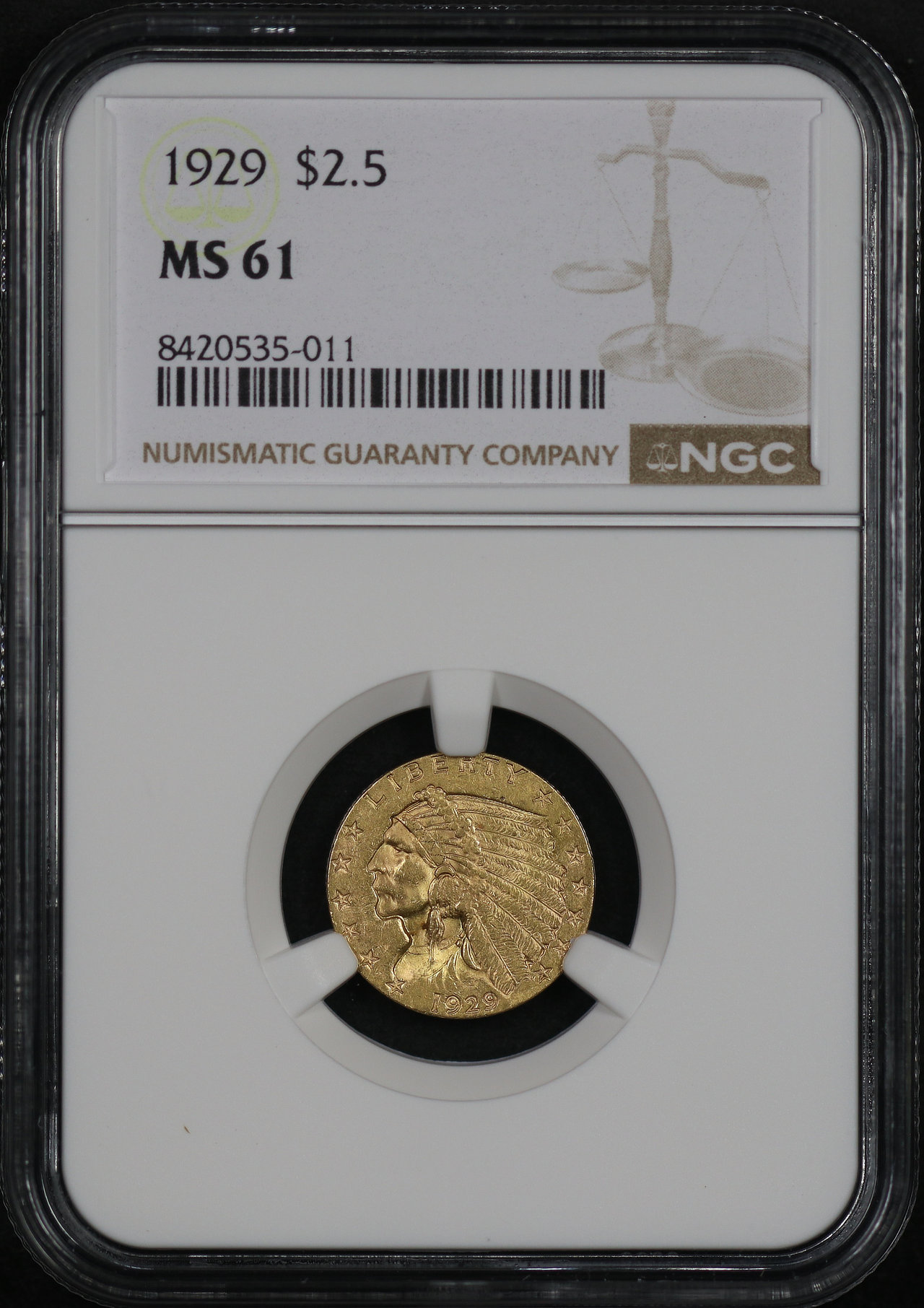 1929 Indian $2.5 NGC MS-61