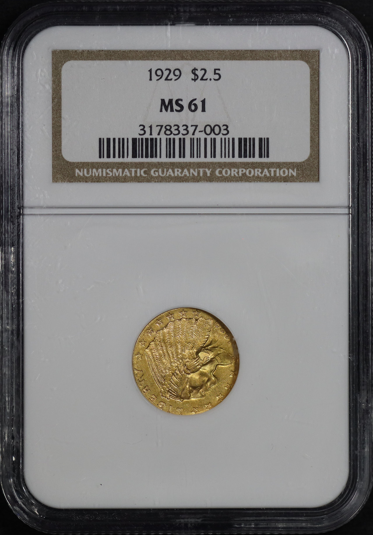 1929 Indian $2.5 NGC MS-61
