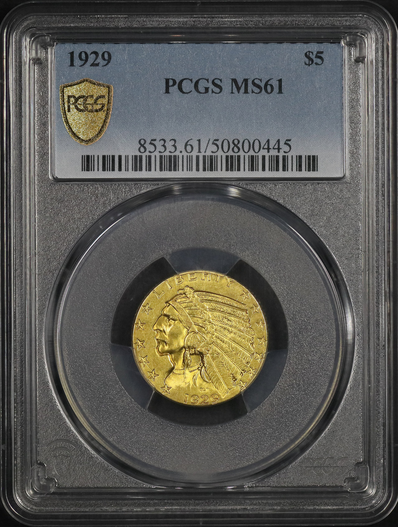 1929 Indian $5 PCGS MS-61 designed by Bela Lyon Pratt.