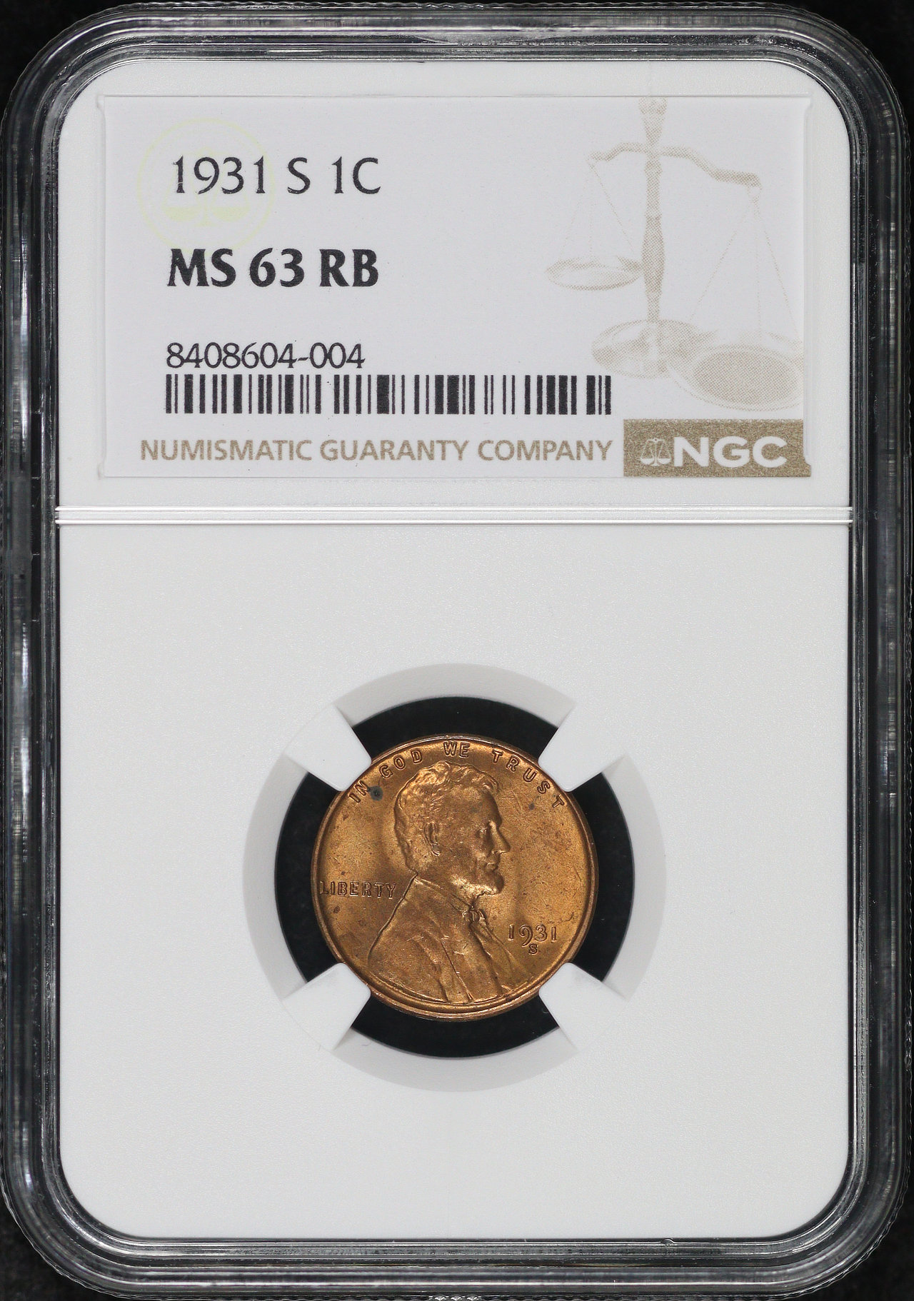 1931-S Lincoln Cent Wheat Reverse NGC MS-63 RB.