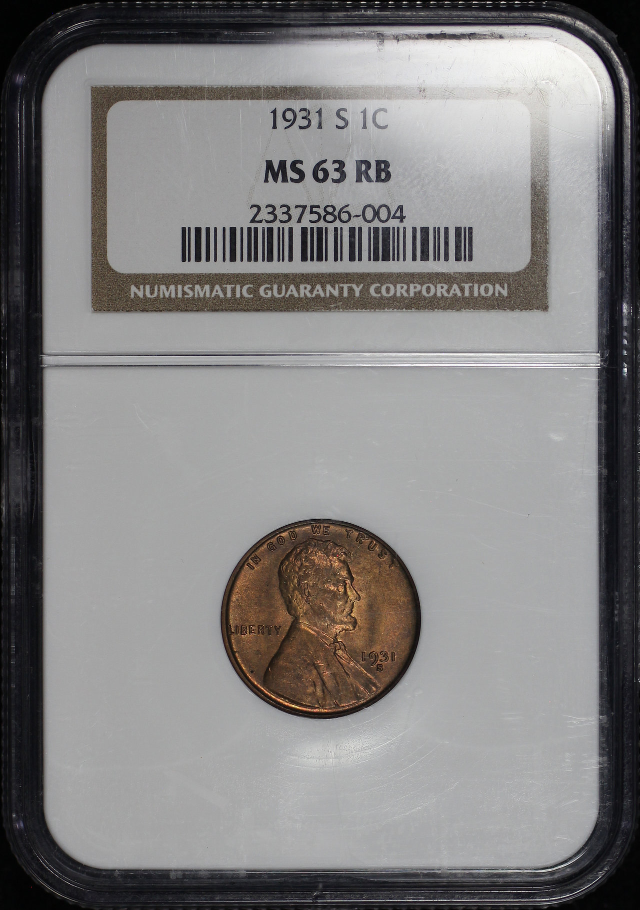 1931-S Lincoln Cent Wheat Reverse NGC MS-63 RB.