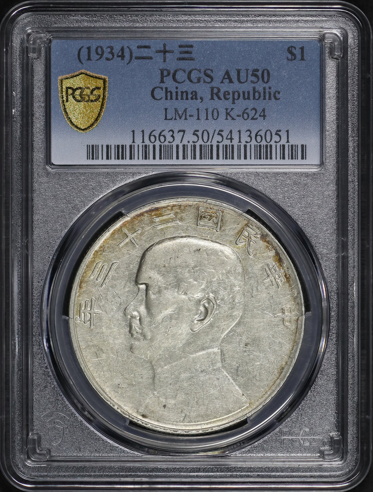 (1934) China, Republic Silver $1 LM-110 K-624 PCGS AU-50.