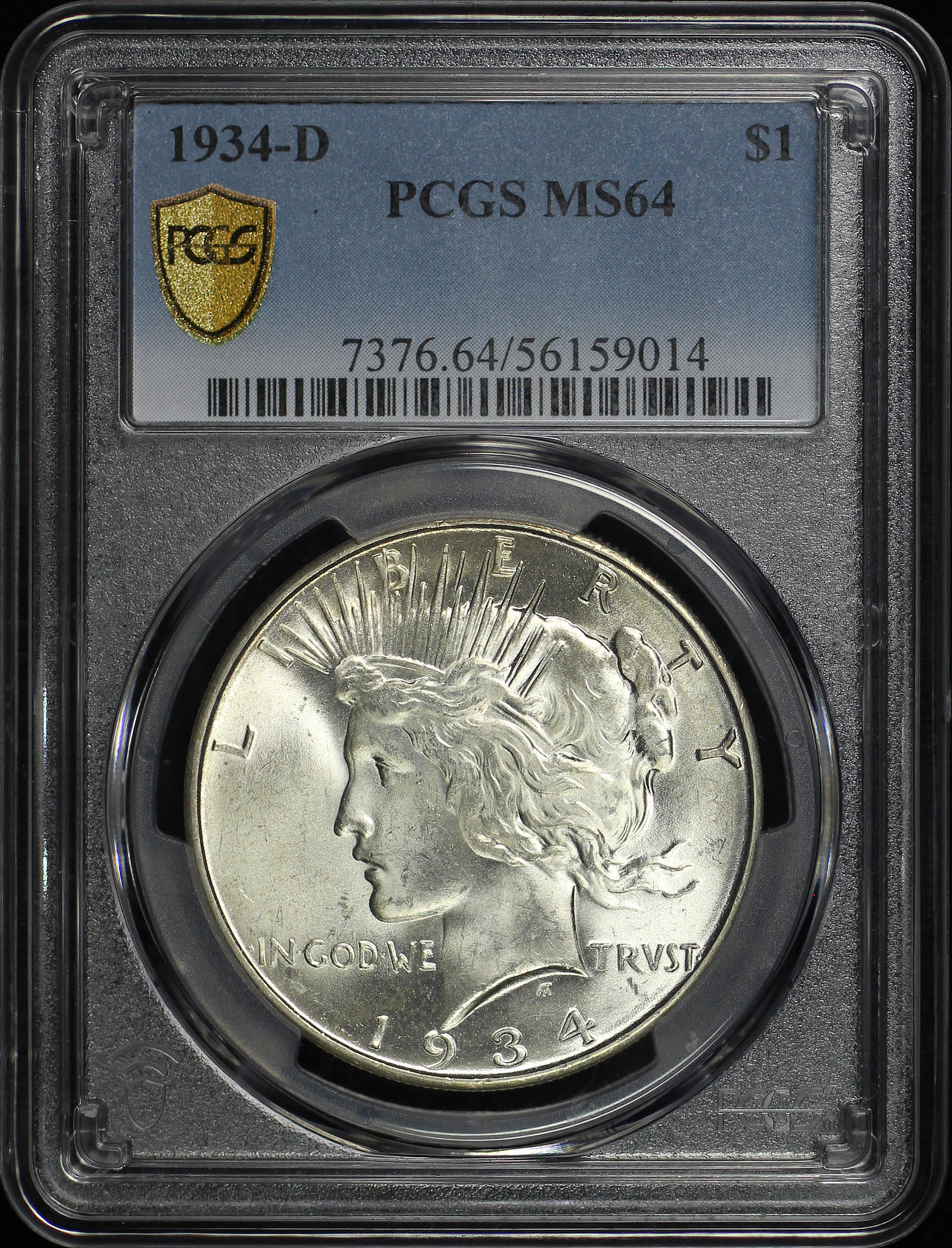 1934-D Peace Dollar PCGS MS-64 designed by Anthony de Francisci.