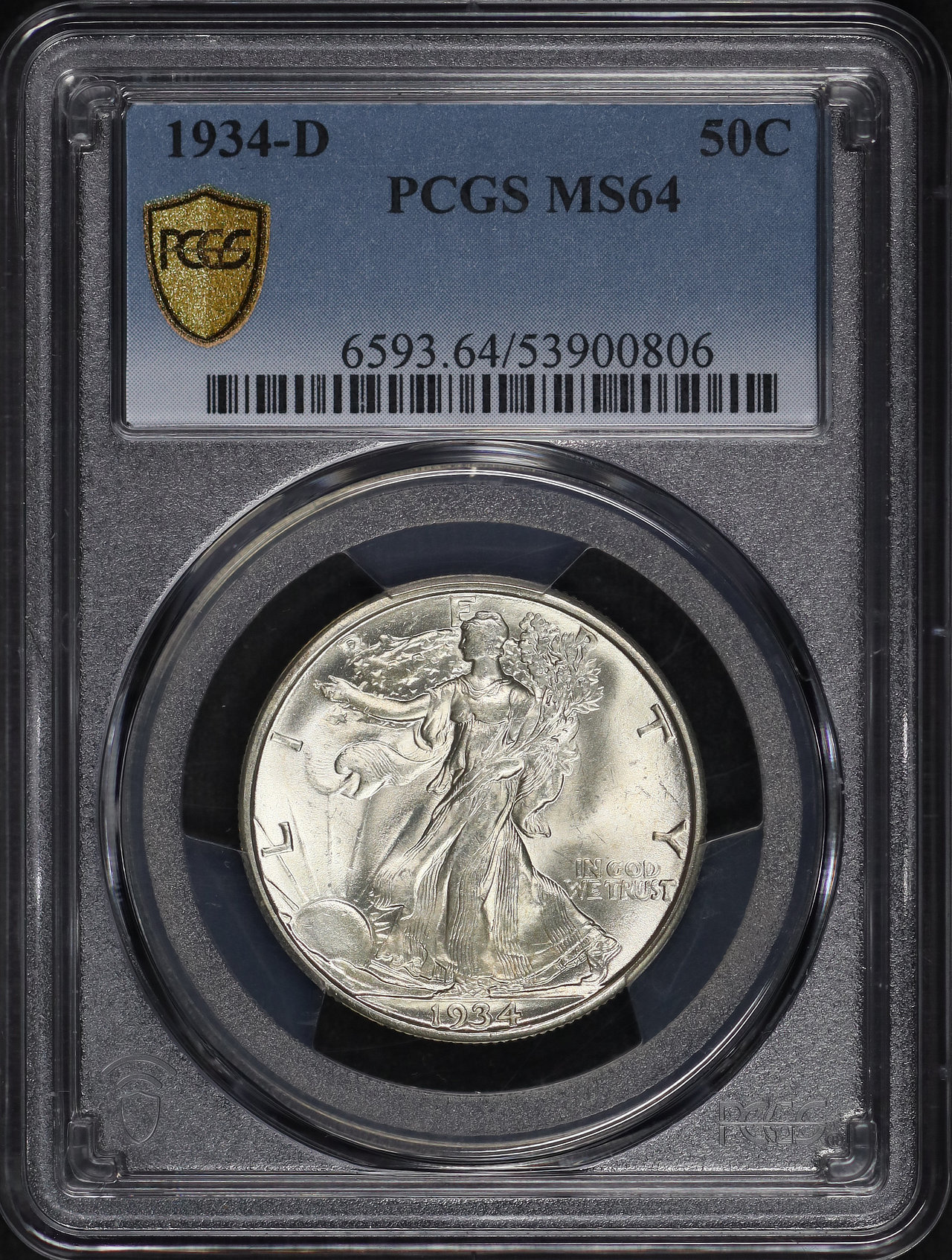 1934-D Walking Liberty Half Dollar PCGS MS-64 designed by Adolph Alexander Weinman.