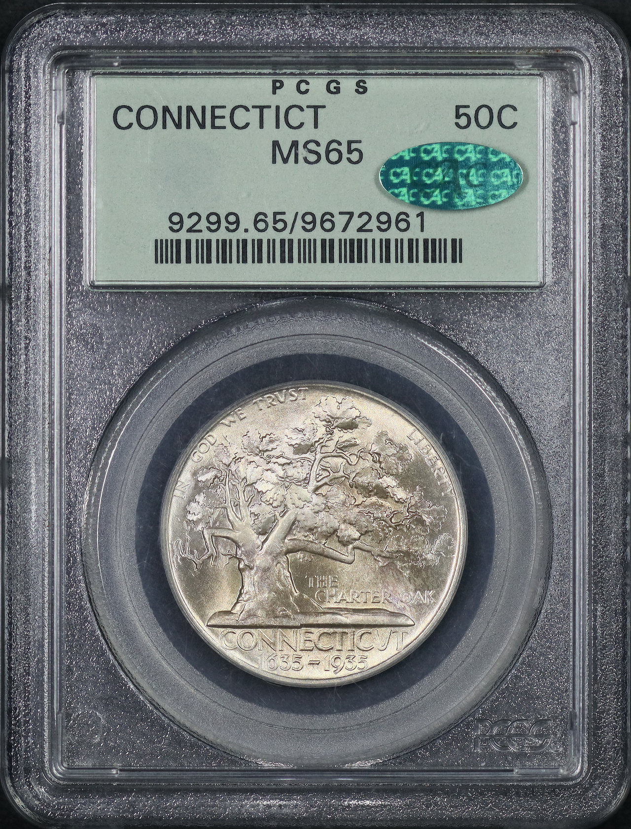 1935 50C Connecticut Silver Commemorative PCGS MS-65 CAC Old Green Holder