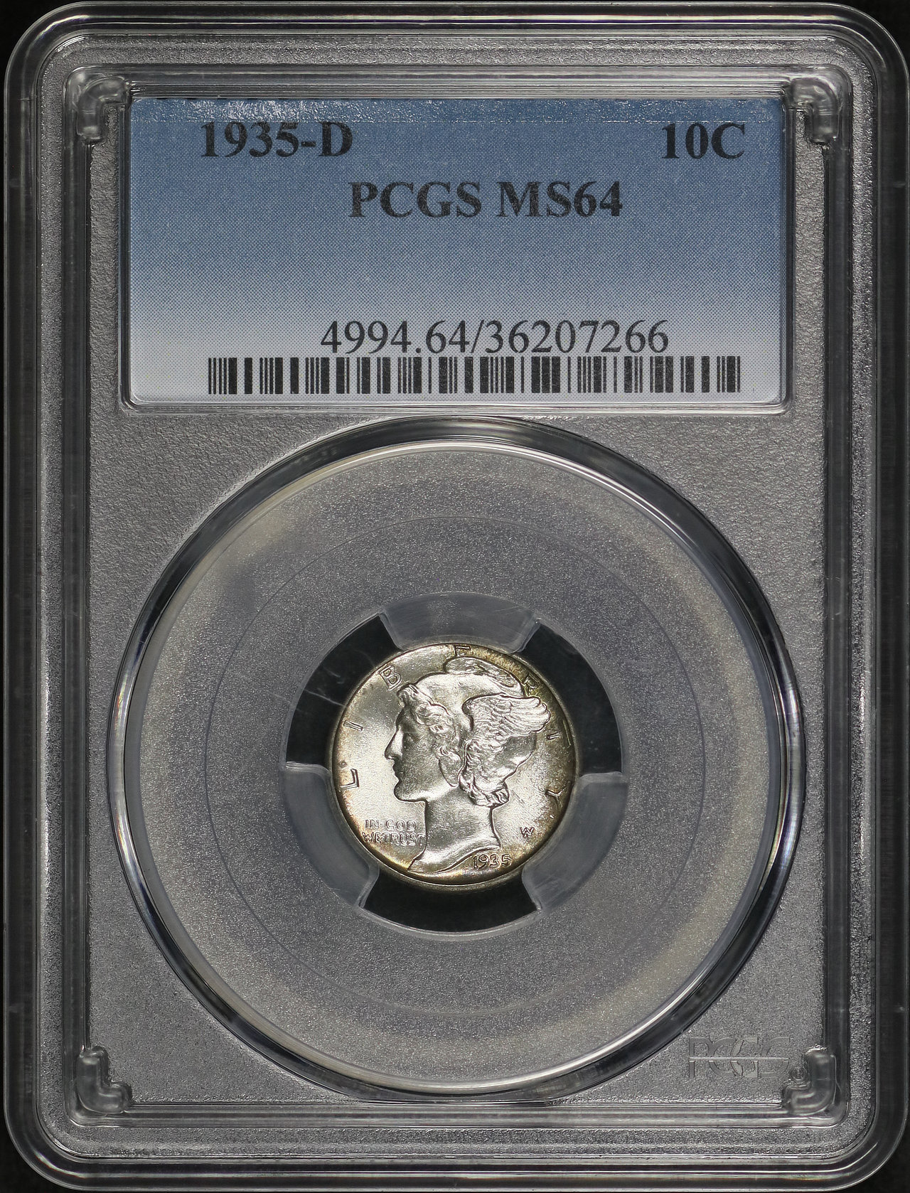 1935-D Mercury Dime PCGS MS-64 designed by Adolph Alexander Weinman.
