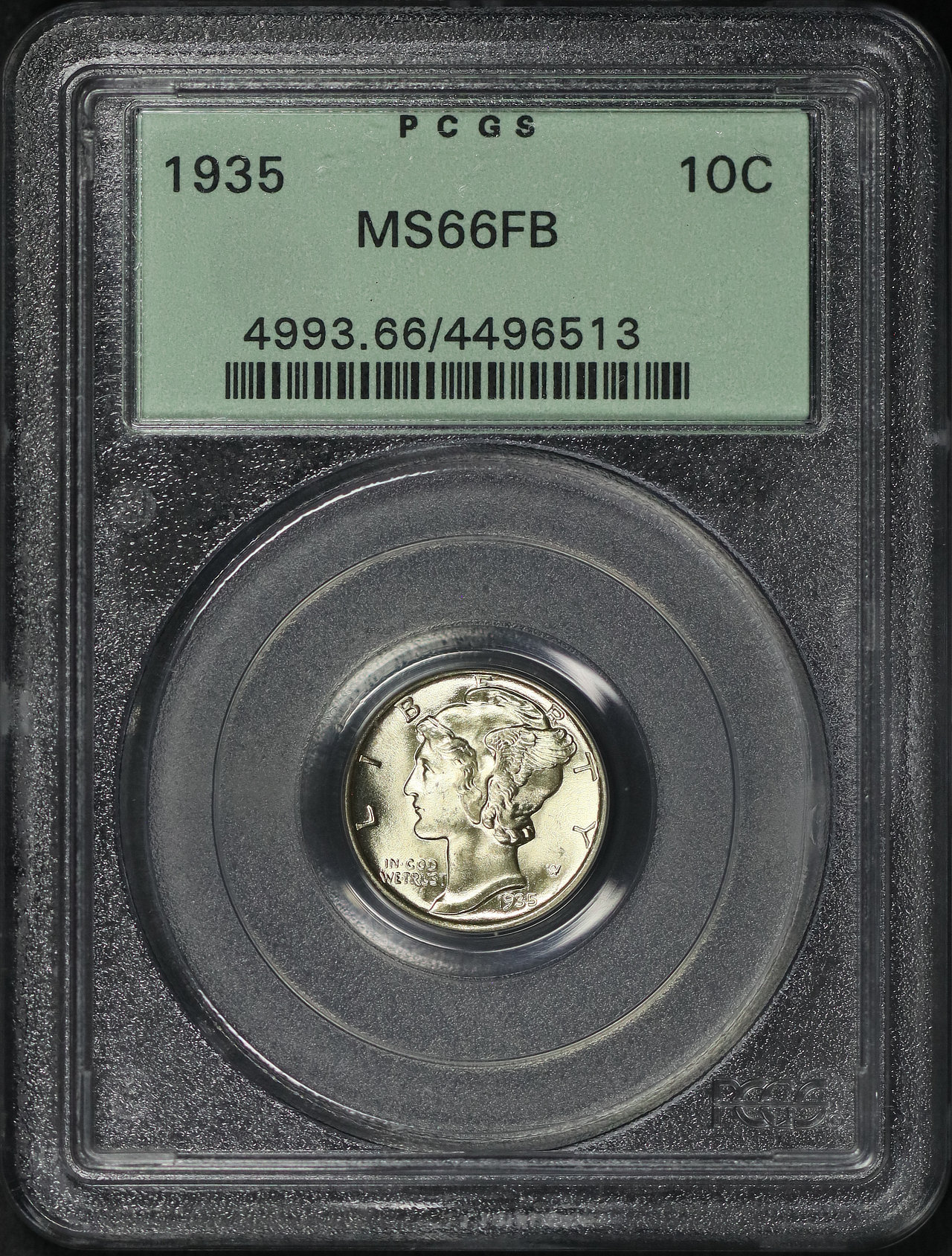 1935 Mercury Dime PCGS MS-66 FB Old Green Holder