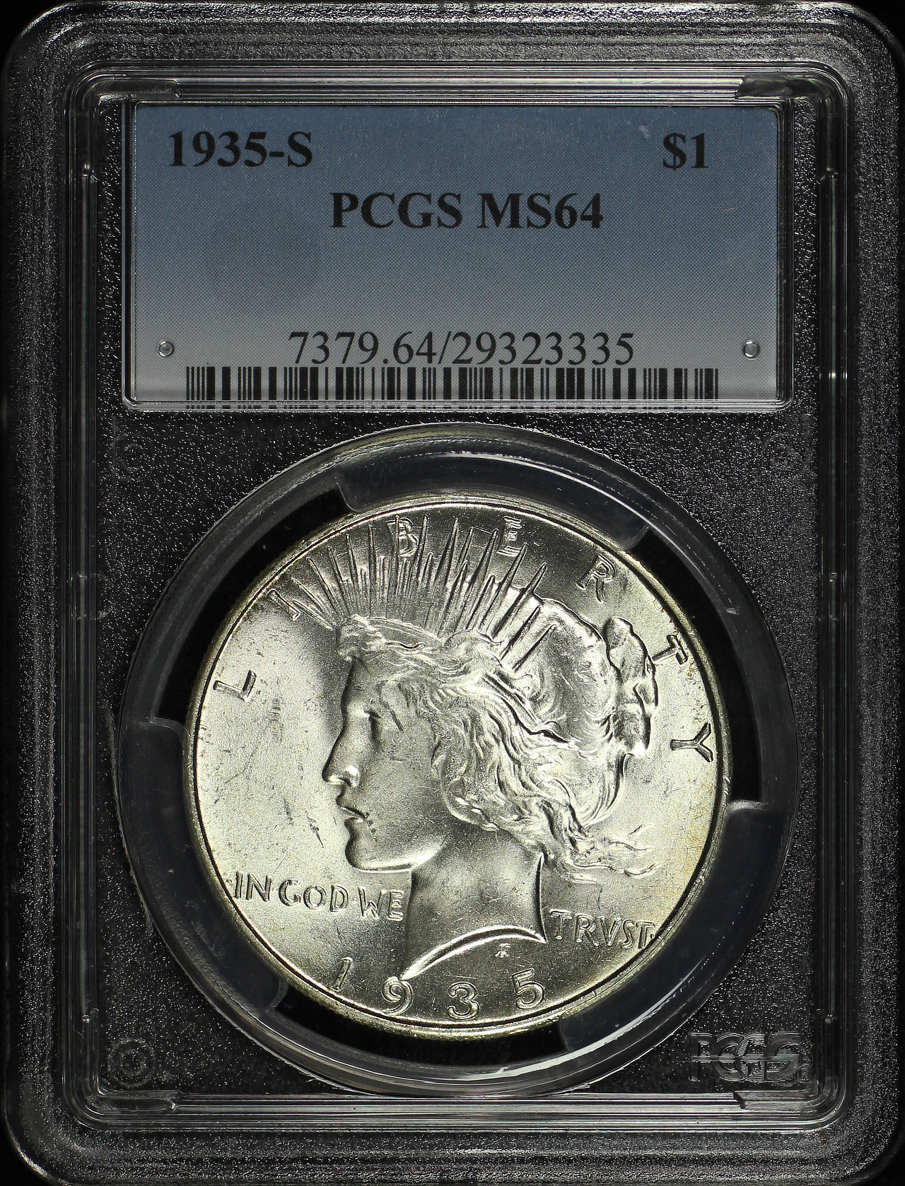 1935-S Peace Dollar PCGS MS-64 designed by Anthony de Francisci.