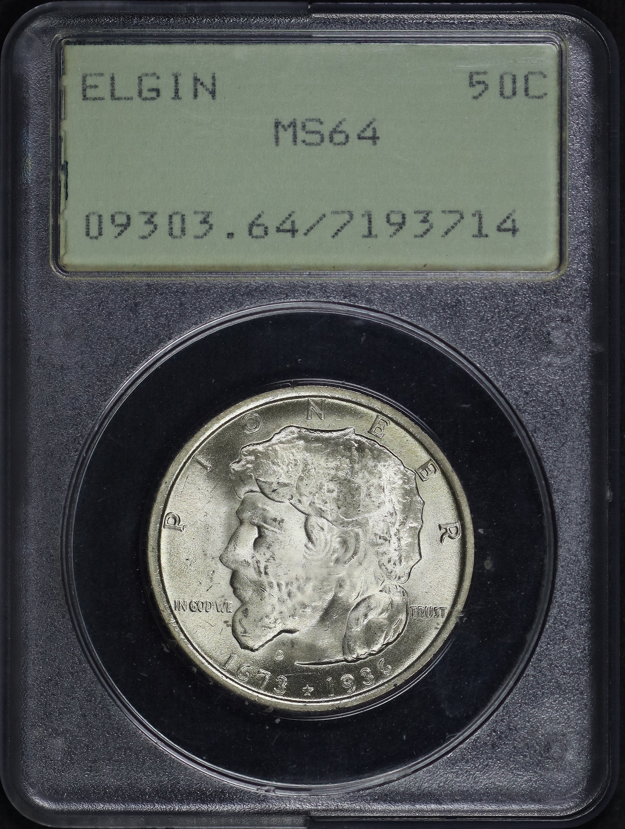 1936 50C Elgin Silver Commemorative PCGS MS-64 Old Green Rattler designed by Trygve Rovelstad.