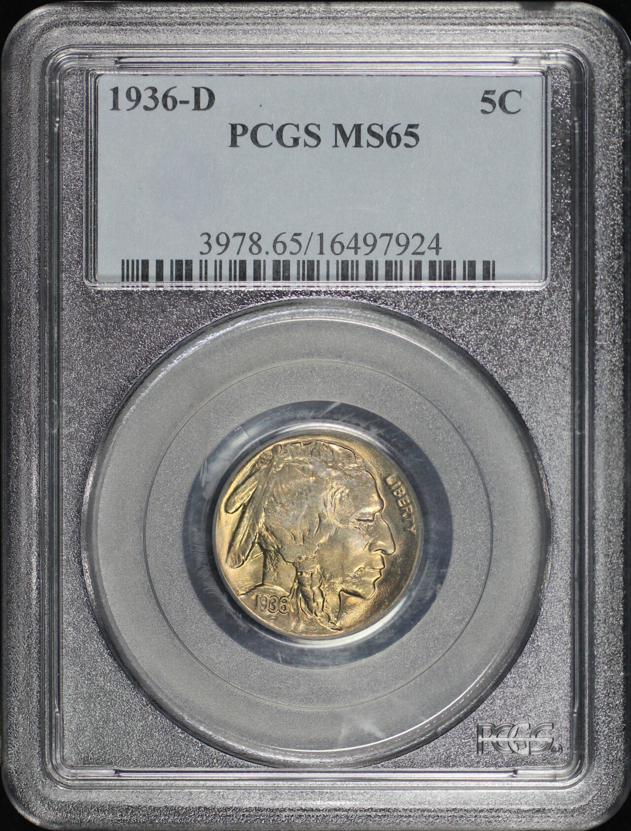 1936-D Buffalo Nickel PCGS MS-65 designed by James Earle Fraser.