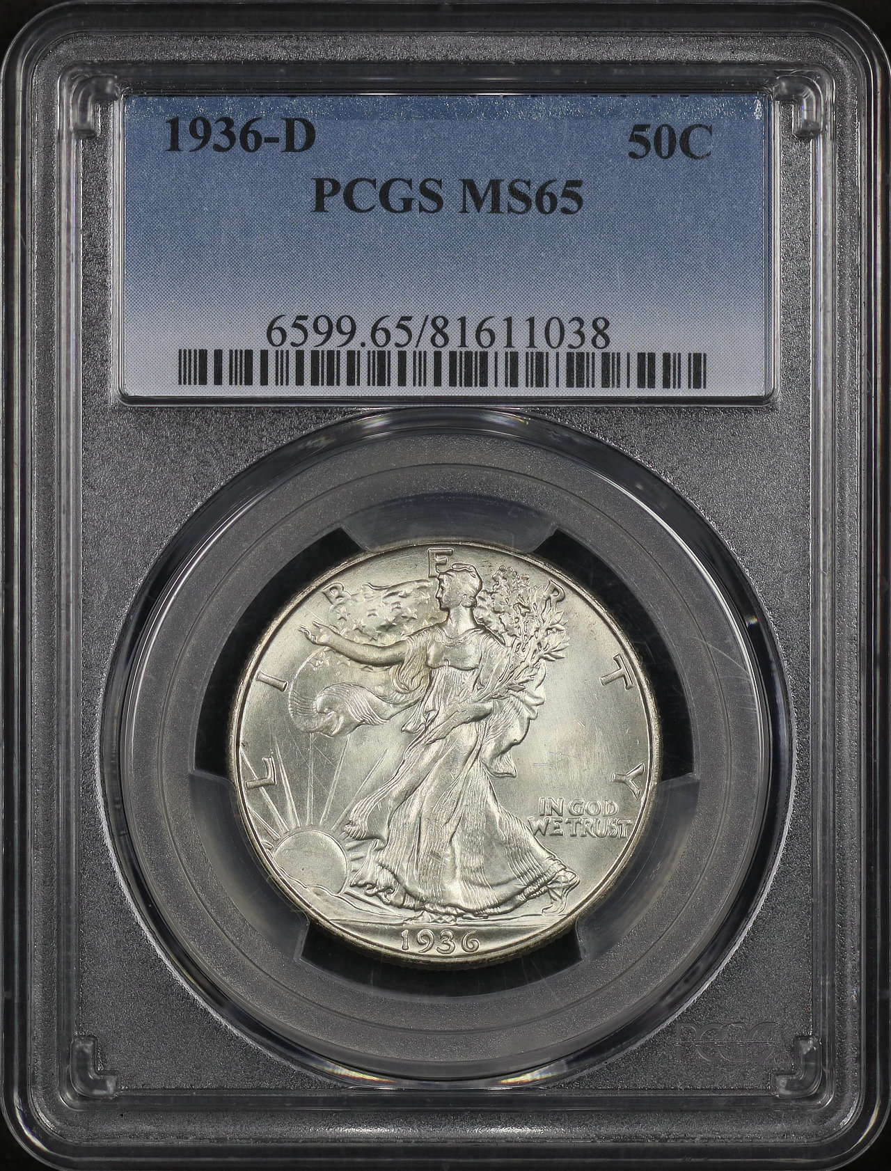 1936-D Walking Liberty Half Dollar PCGS MS-65 designed by Adolph Alexander Weinman.