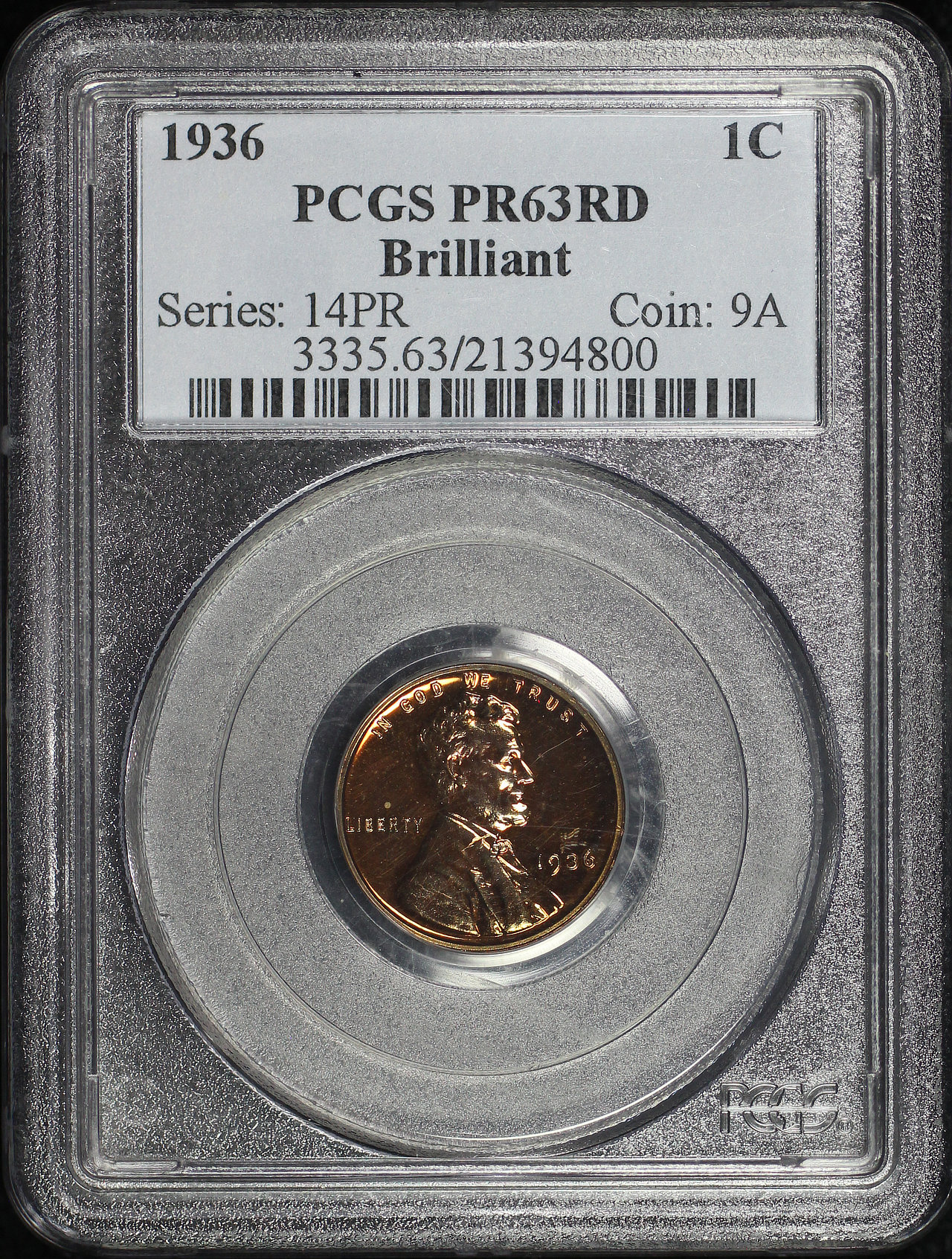 1936 Lincoln Cent Wheat Reverse Brilliant PCGS PR-63 RD