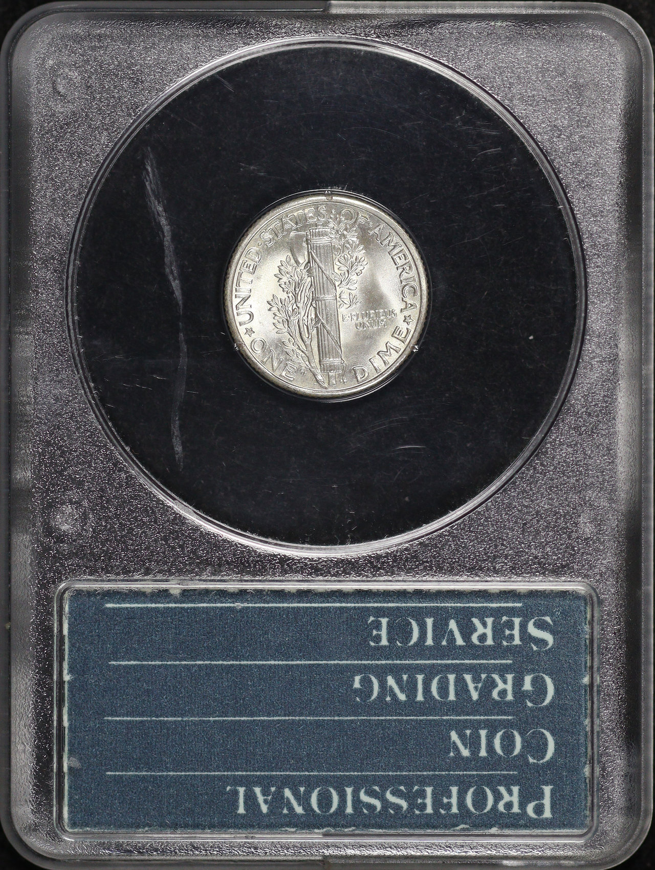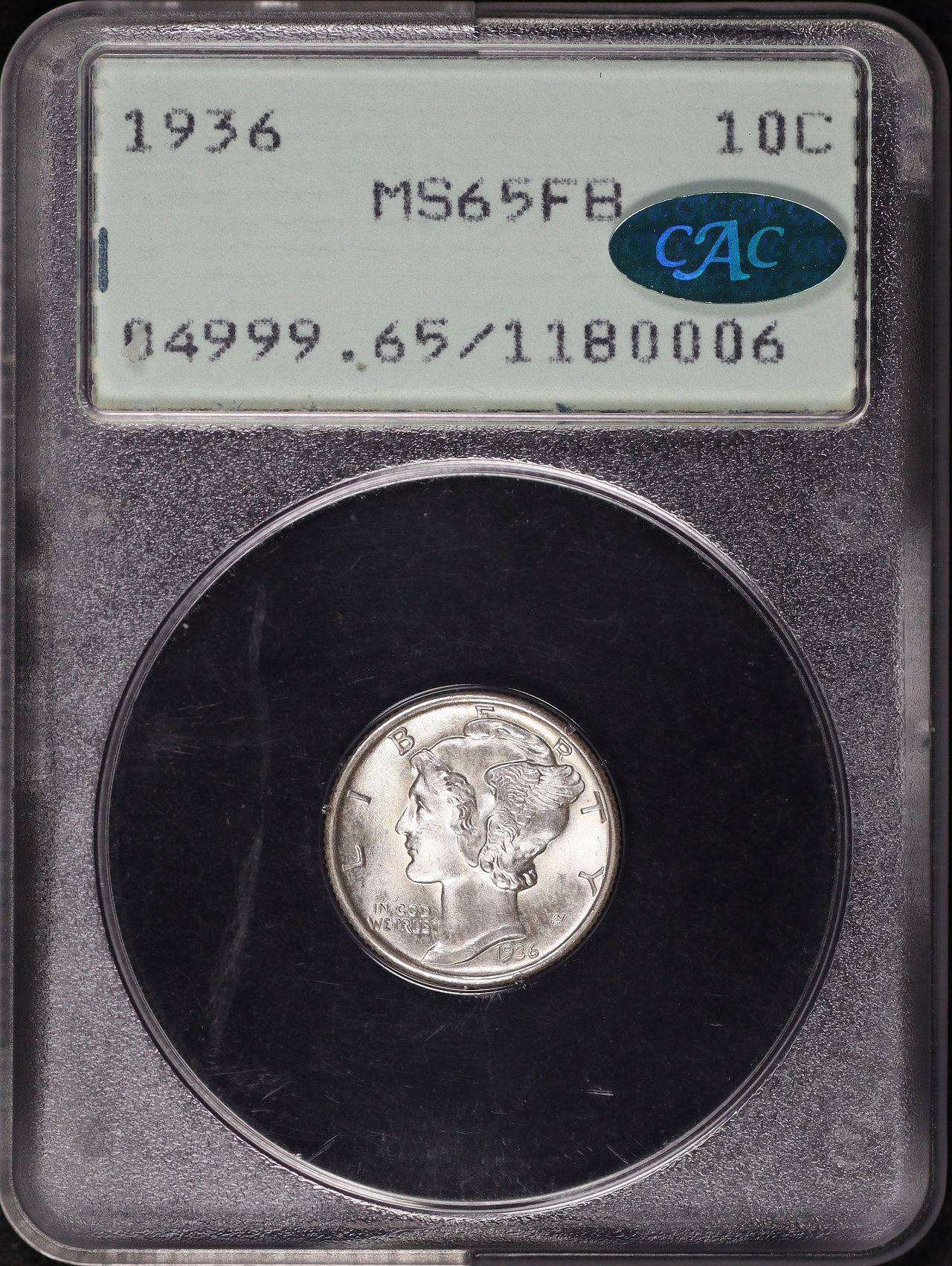 1936 Mercury Dime PCGS MS-65 FB CAC Old Green Rattler Holder designed by Adolph Alexander Weinman.