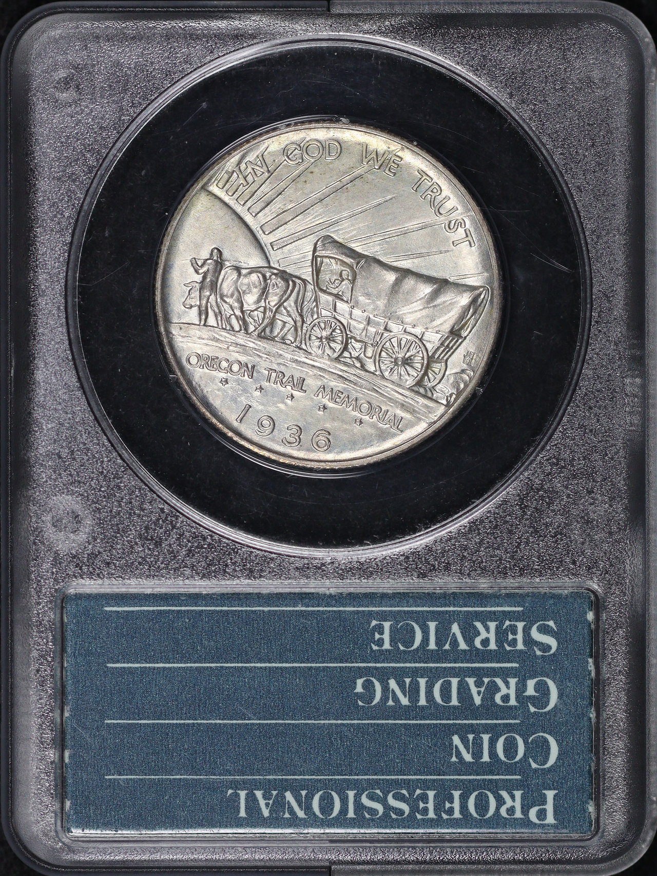 1936-S 50C Oregon Silver Commemorative PCGS MS-63 Gold CAC Old Green Rattler Holder designed by James Earle Fraser and Laura Gardin Fraser. Both sides display very faint pastel toning!