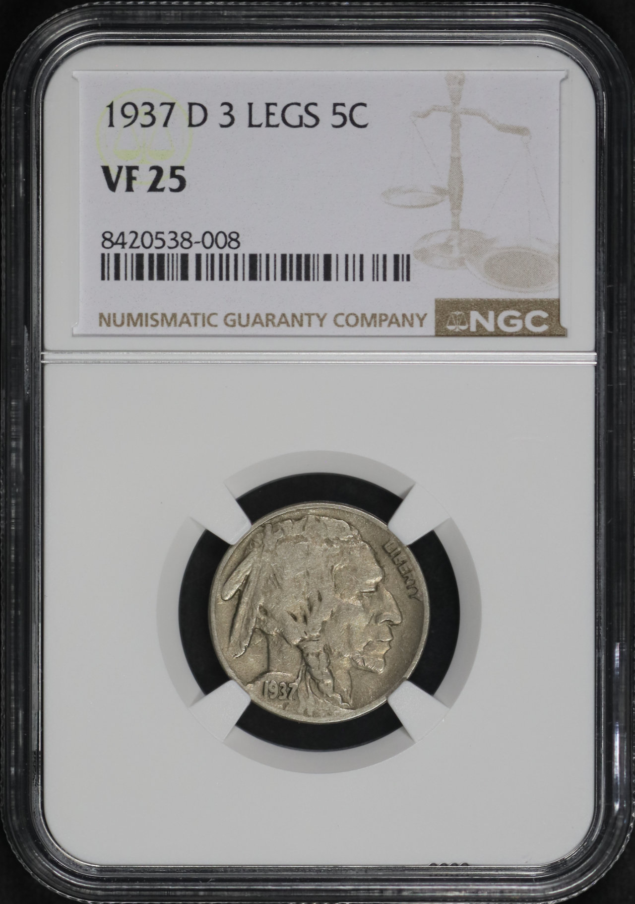 1937-D Buffalo Nickel 3 Legs NGC VF-25.