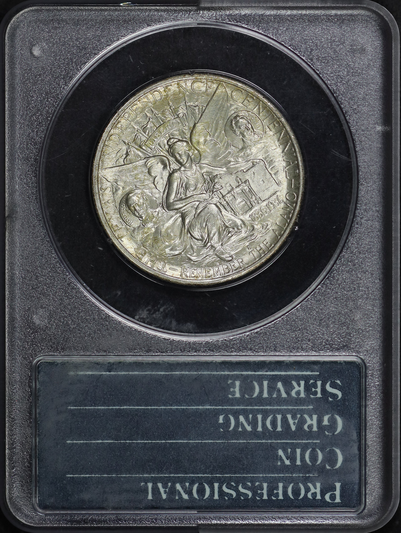 1937-S 50C Texas Silver Commemorative PCGS MS-65 Old Green Rattler Holder designed by Pompeo Coppini.
